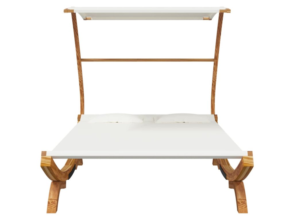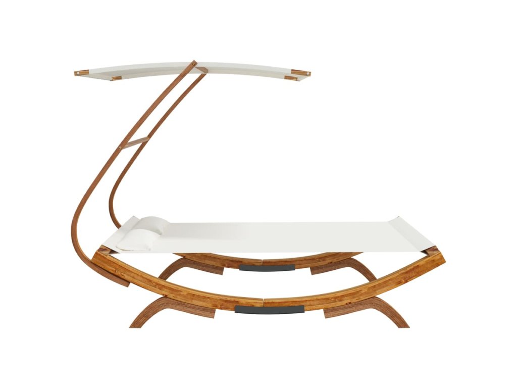 Táto záhradná posteľ má rám z ohýbaného masívu, vďaka čomu je stabilná a trvácna. Plocha na ležanie je vyrobená z látky, ktorá sa ľahko čistí, a spolu s vankúšmi vám poskytne dokonalý komfort. Strieška vás počas relaxovania v záhrade ochráni pred priamym slnkom.