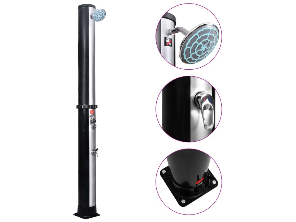 Naša solárna sprcha vám umožní osviežiť sa na záhrade alebo pri bazéne pred alebo po plávaní. Táto sprcha sa dá ľahko pripojiť k záhradnej hadici pre prívod studenej vody. Absorbovaná solárna energia zahreje vodu vo vnútri nádrže a ponúkne vám perfektnú sprchu! Teplota vody sa môže vyšplhať až na 60 °C. Je vybavená 40 litrovou nádržou.