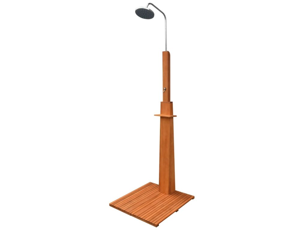 Táto sprcha má dlhú životnosť, keďže je vyrobená z eukalyptového dreva a silnej kovovej konštrukcie. Kombinovaním krásneho hladkého dreveného stojana a podstavca je stelesnením pohodlného dizajnu. Sprcha môže byť ľahko pripojená k akejkoľvek hadici a navyše sa dá nastaviť požadovaná výška hlavice.