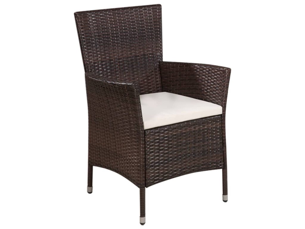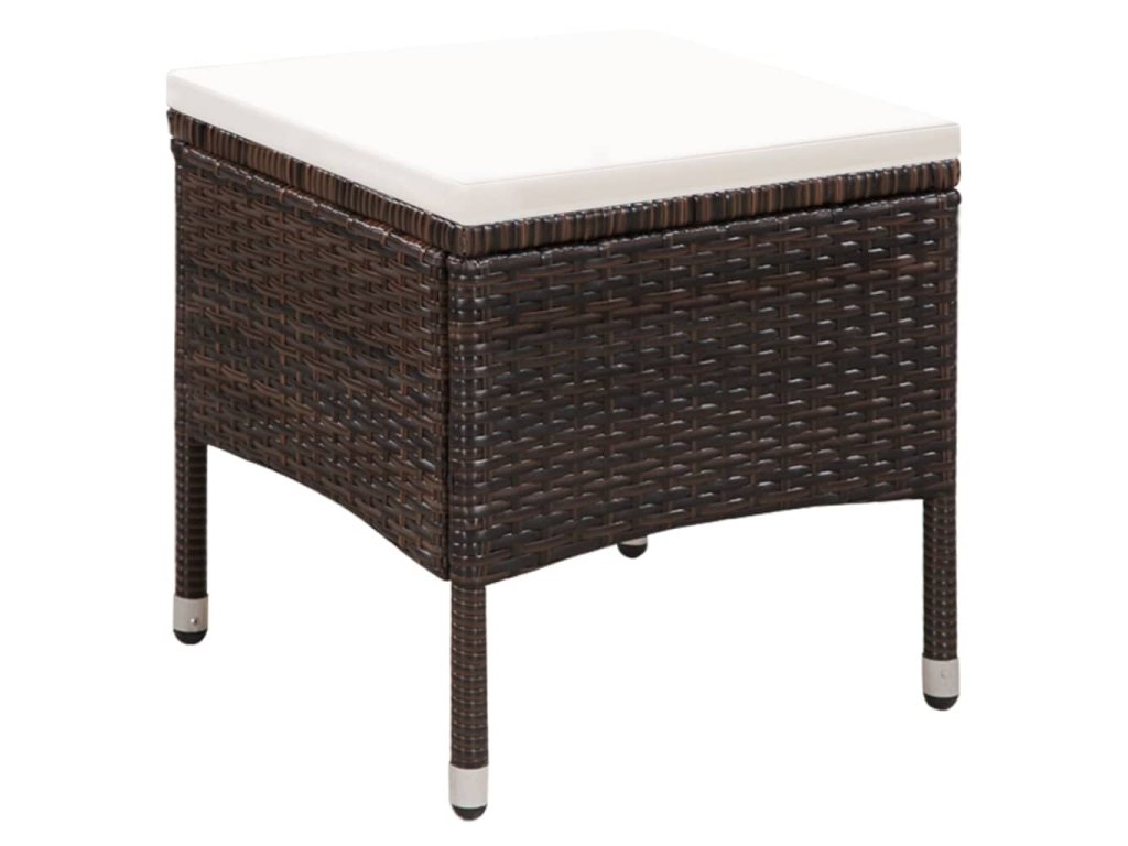 Táto nádherná súprava polyratanového záhradného nábytku pozostáva z 1 jedálenskej stoličky, 1 taburetky a 2 odnímateľných podložiek na sedadlo a stane sa stredobodom vašej záhrady či terasy!