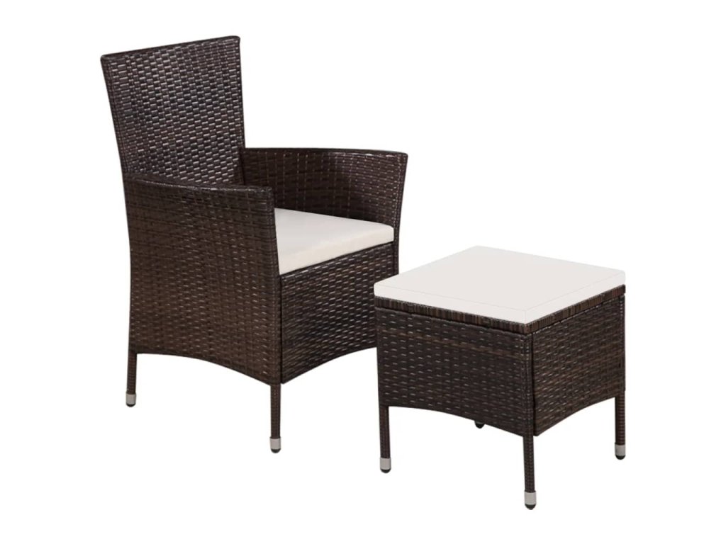 Súprava vonkajšieho nábytku je vyrobená z vodovzdorného PE ratanu, vďaka čomu sa ľahko čistí, je odolná a vhodná na každodenné používanie v exteriéri. Oceľový rám stoličke a taburetke dodáva potrebnú pevnosť a stabilitu, no zároveň je ľahký, a tak sa oba kúsky nábytku dajú jednoducho priemiestniť a prispôsobiť akémukoľvek prostrediu. Súprava sa navyše dodáva s veľmi pohodlnými, nahusto vyčalunenými podložkami na sedadlo, ktoré poskytujú optimálne pohodlie pri sedení. Polyesterové poťahy si nevyžadujú náročnú údržbu a dajú sa zvliecť a oprať. V balení sa nachádza 1 jedálenská stolička, 1 taburetka a 2 odnímateľné podložky na sedadlo.