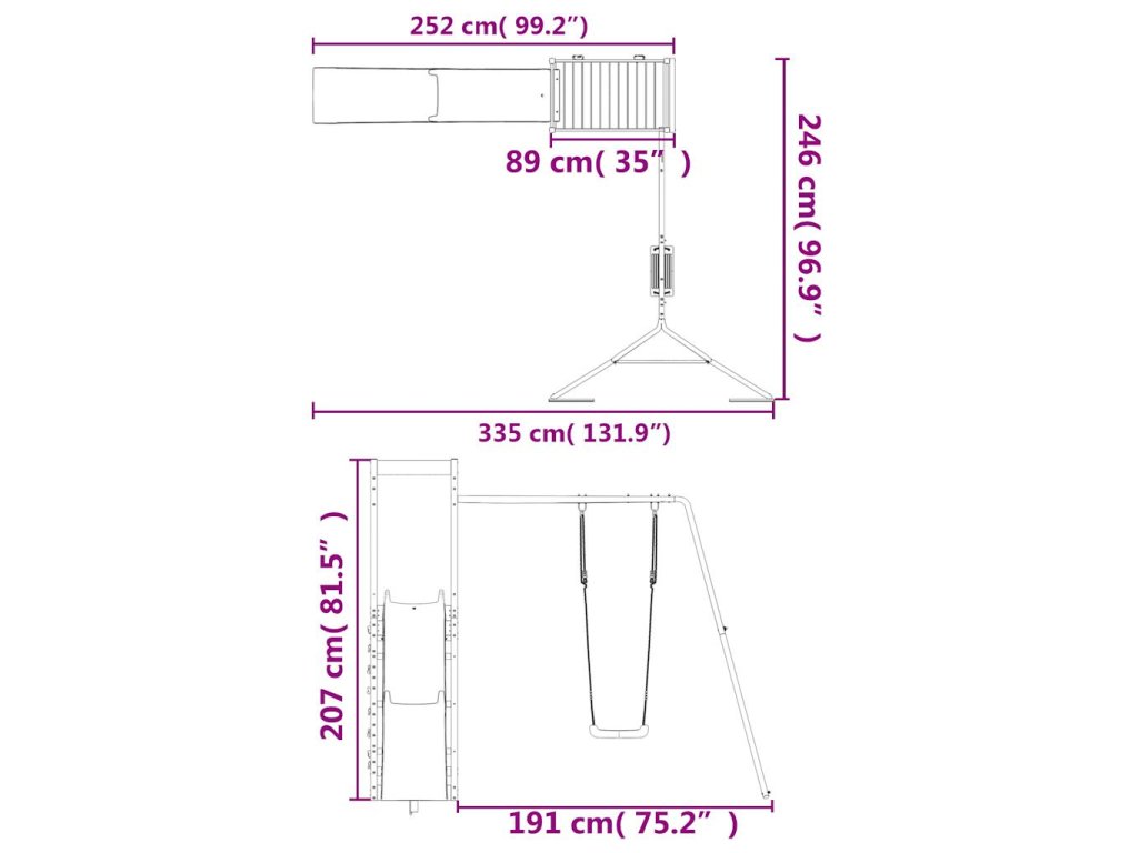 - Rozmery hojdačky (každej): 33 x 22 x 140 cm (Š x H x V)
