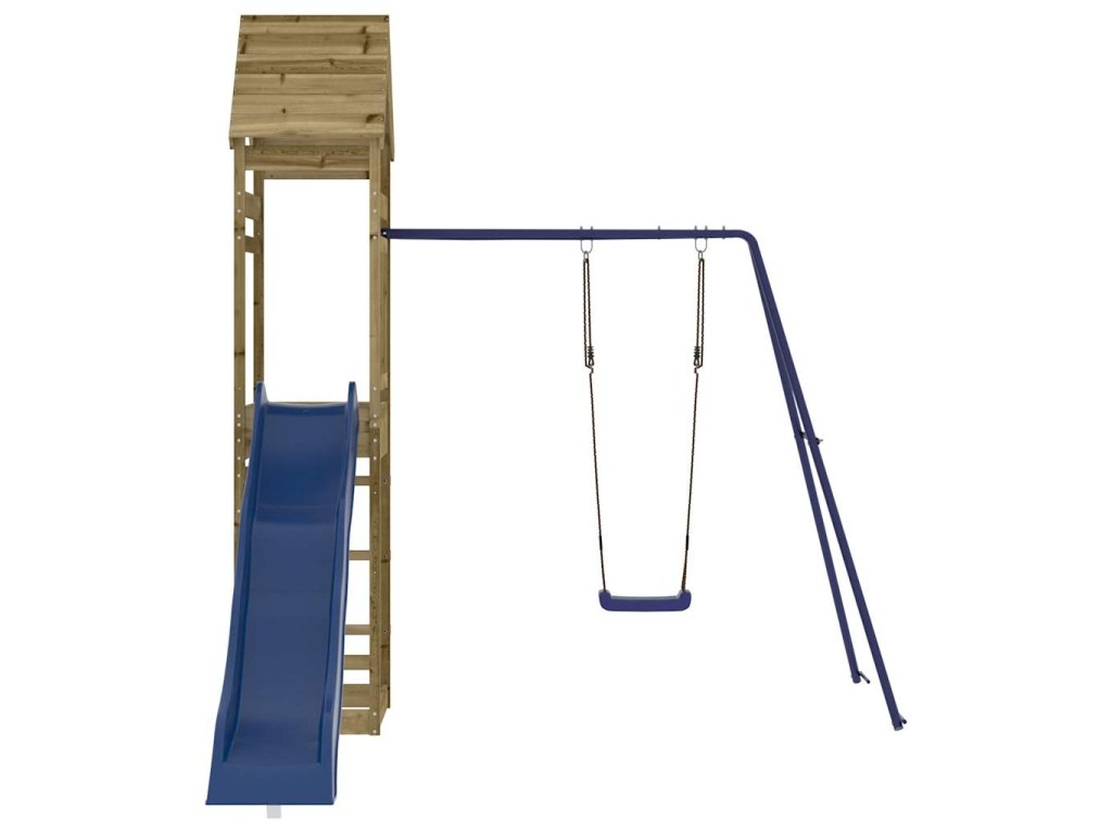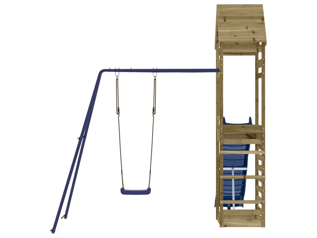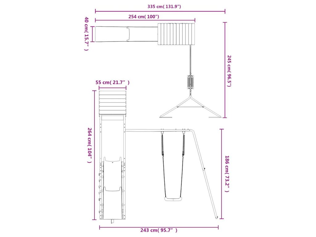 - Premyslený dizajn: Okolité drevené zábradlia sú navrhnuté tak, aby zaistili bezpečnosť detí pri ich veselej hre. Drevená strieška tiež poskytuje tieň vašim deťom v horúcich letných dňoch.