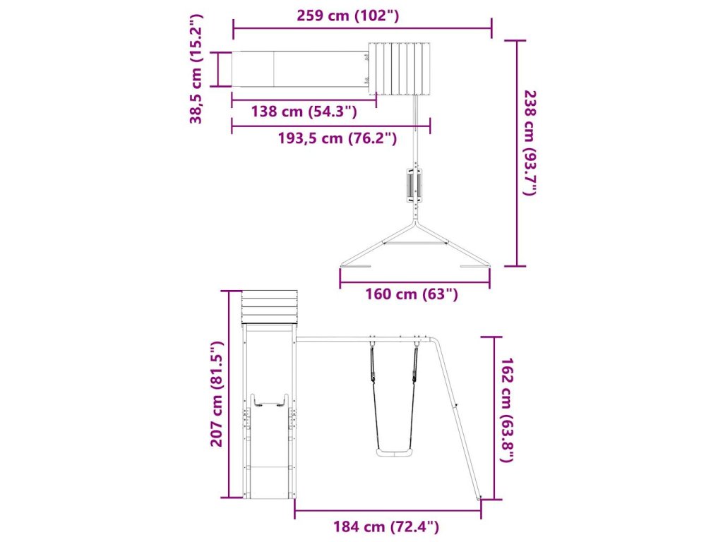 - Premyslený dizajn: Okolité drevené zábradlia sú navrhnuté tak, aby zaistili bezpečnosť detí pri ich veselej hre. Drevená strieška tiež poskytuje tieň vašim deťom v horúcich letných dňoch.