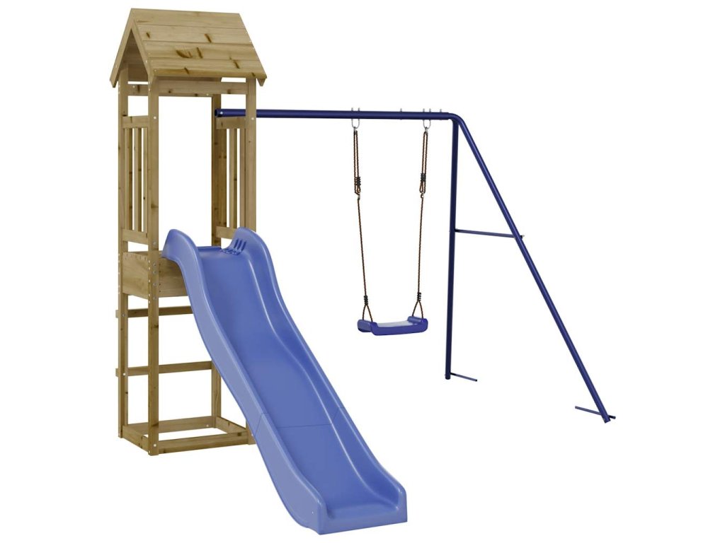 - Odolný materiál: Tento hrací domček je vyrobený z vákuovo tlakovaného impregnovaného borovicového dreva. Masívne borovicové drevo je krásny prírodný materiál. Borovicové drevo má rovnú kresbu a nachádzajú sa na ňom hrče, ktoré tomuto materiálu dodávajú charakteristický rustikálny vzhľad. Impregnácia je proces konzervácie, ktorý sa vykonáva pomocou autoklávov. Tlaková úprava zvyšuje odolnosť voči rozkladu a vode.