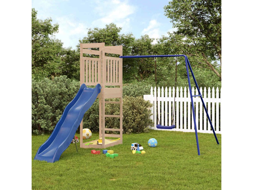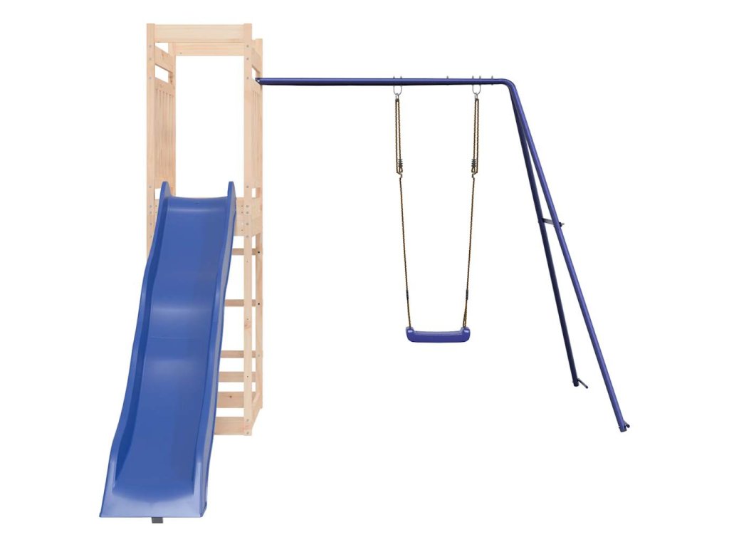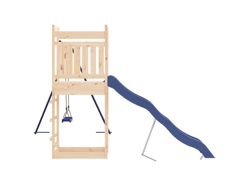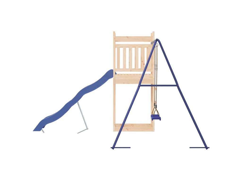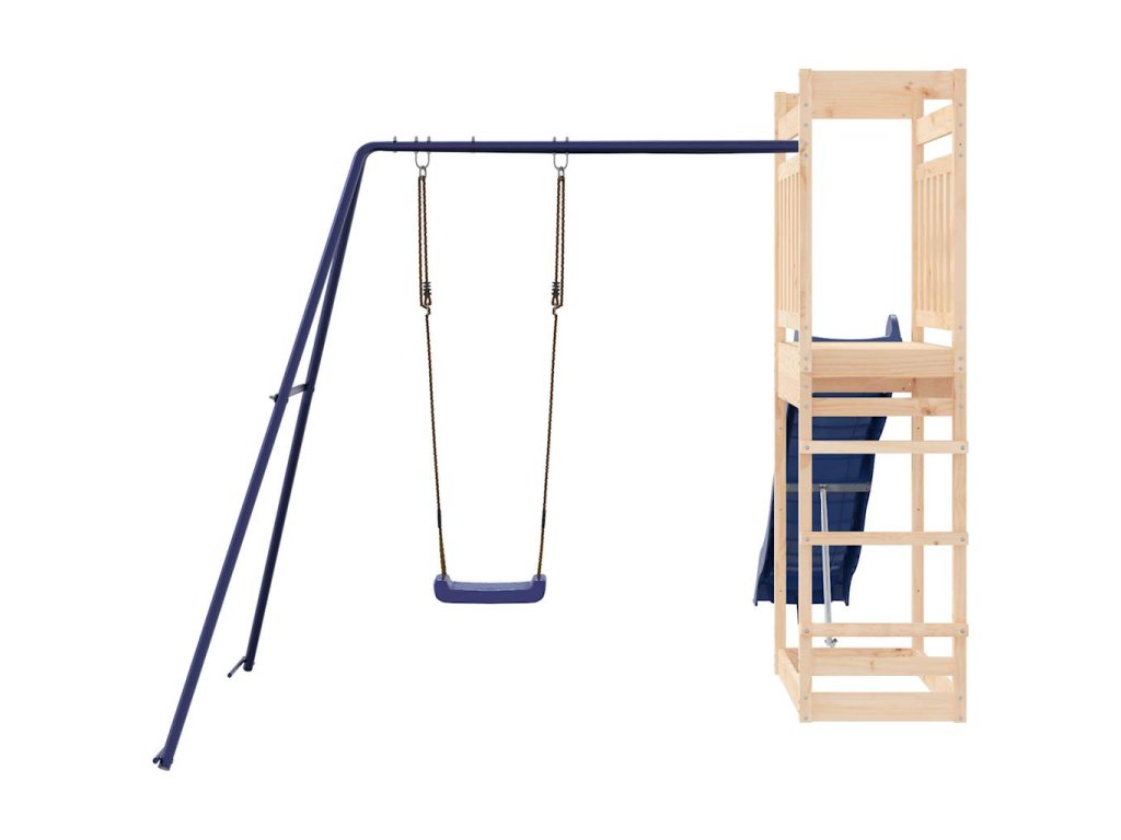- Pevný a stabilný rám: Drevený rám ihriska zaisťuje pevnosť a stabilitu. Nohy detskej hojdačky v tvare "A" navyše umožňujú rovnováhu.