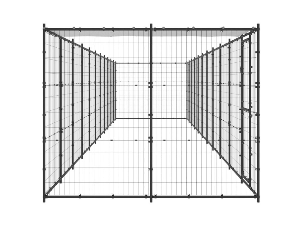 Táto psia búda poskytuje dostatok priestoru na cvičenie. Pletivo po celom obvode pomáha predchádzať nepleche a neočakávaným nehodám a zároveň umožňuje vetranie. Vďaka pevnej oceľovej konštrukcii s práškovým nástrekom je táto psia búda odolná a vyrobená tak, aby vydržala. Vyrobená z PE, priložená vrchná strieška je vodeodolná a odolná voči UV žiareniu. Dvere s pántmi a uzamykateľným západkovým systémom zaisťujú extra bezpečnosť a ochranu vašich psov.