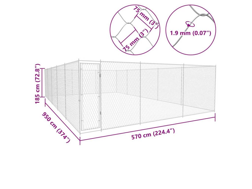 Veľký koterec poskytuje dostatok miesta na cvičenie psov. Drôtené oplotenie sa postará o to, aby z koterca pes neušiel a aby nedošlo k nechceným úrazom a tiež o to, aby doň prúdilo dostatočné množstvo vzduchu. Vďaka pevnej oceľovej konštrukcii je táto kvalitná ohrada naozaj trvácna. Na bráničke sa nachádza zámka pre väčšiu bezpečnosť. Voliéra pre psy sa jednoducho montuje.
