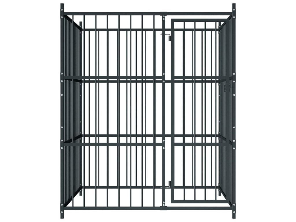 Veľký koterec pre psy poskytuje dostatok miesta na cvičenie psov a jeho steny sú tvorené oceľovými tyčami, ktoré sa postarajú o to, aby z neho pes neušiel a aby nedošlo k nechceným úrazom a tiež o to, aby doň prúdilo dostatočné množstvo vzduchu. Vďaka stabilnej a odolnej oceľovej konštrukcii je táto voliéra trvácna a má dlhú životnosť. Dvierka s pántmi sú vybavené zámkou na západku a poskytnú vašim psom vysokú bezpečnosť a pocit istoty.
