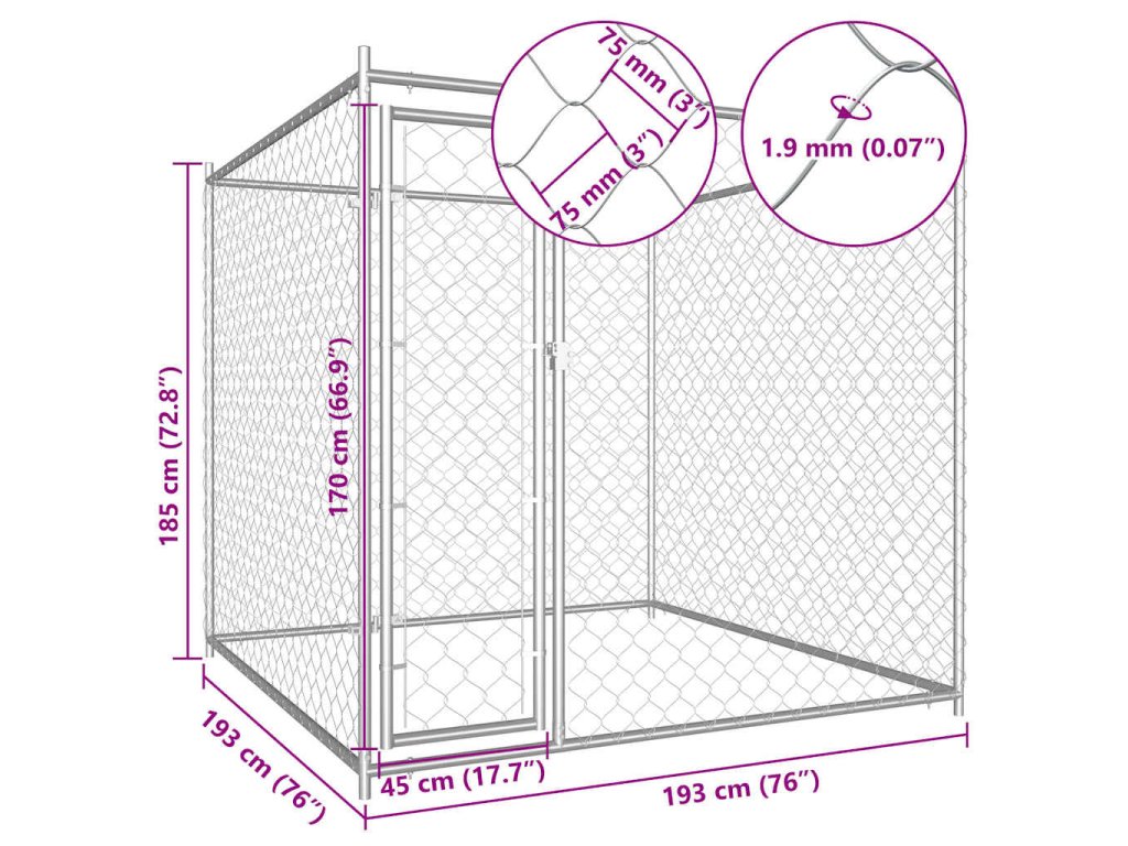 Veľký koterec poskytuje dostatok miesta na cvičenie psov a jeho steny sú tvorené drôteným pletivom, ktoré sa postará o to, aby z neho pes neušiel a aby nedošlo k nechceným úrazom a tiež o to, aby doň prúdilo dostatočné množstvo vzduchu. Vďaka stabilnej a odolnej konštrukcii z pozinkovanej ocele je táto voliéra trvácna a má dlhú životnosť. Dvierka s pántmi poskytnú vašim psom vysokú bezpečnosť a pocit istoty, pretože sú vybavené zámkou na západku. Koterec sa navyše jednoducho montuje.