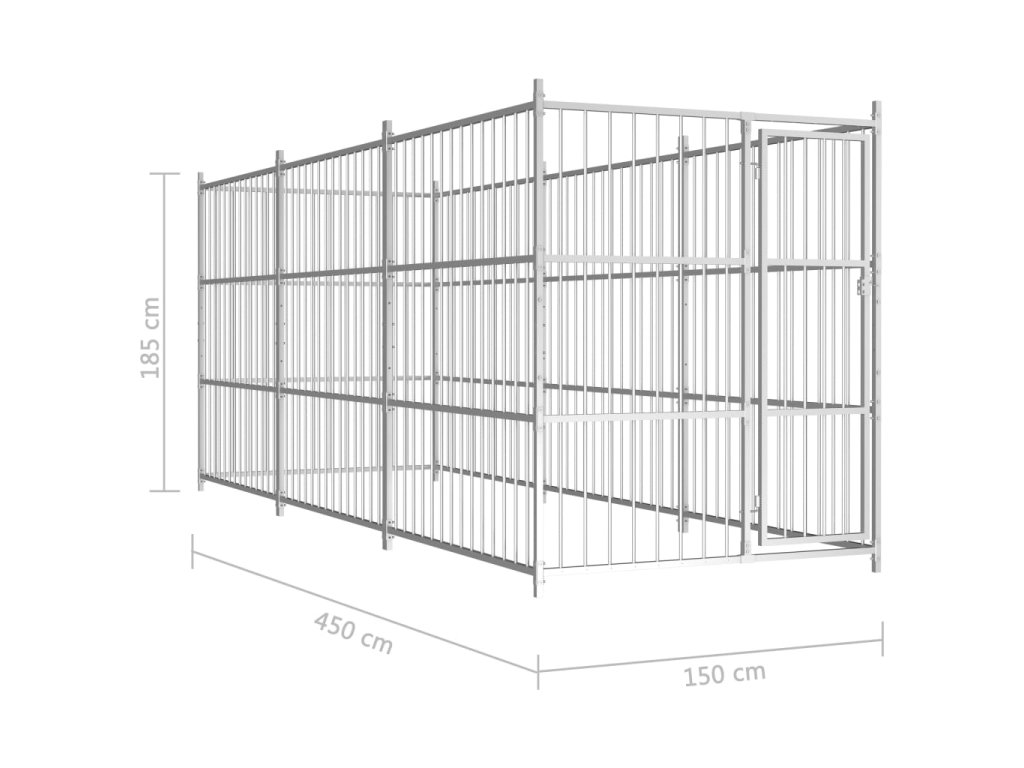 Koterec pre psy poskytuje dostatok miesta na cvičenie psov a jeho steny sú tvorené oceľovými tyčami, ktoré sa postarajú o to, aby z neho pes neušiel a aby nedošlo k nechceným úrazom a tiež o to, aby doň prúdilo dostatočné množstvo vzduchu. Vďaka stabilnej a pevnej oceľovej konštrukcii je táto vysokokvalitná voliéra pre psy trvácna a má dlhú životnosť. Dvierka s pántmi sú vybavené zámkou na západku a poskytnú vašim psom vysokú bezpečnosť a pocit istoty.