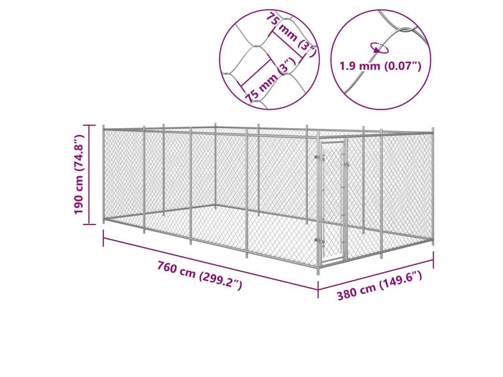 Veľký koterec poskytuje dostatok miesta na cvičenie psov a jeho steny sú tvorené drôteným pletivom, ktoré sa postará o to, aby z neho pes neušiel a aby nedošlo k nechceným úrazom a tiež o to, aby doň prúdilo dostatočné množstvo vzduchu. Vďaka stabilnej a odolnej konštrukcii z pozinkovanej ocele je táto vysokokvalitná voliéra trvácna a má dlhú životnosť. Dvierka s pántmi poskytnú vašim psom vysokú bezpečnosť a pocit istoty, pretože sú vybavené zámkou na západku. Koterec sa jednoducho montuje.