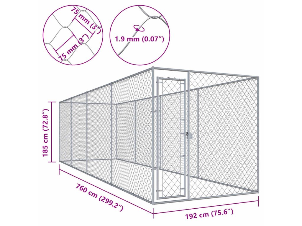 Veľký koterec poskytuje dostatok miesta na cvičenie psov a jeho steny sú tvorené drôteným pletivom, ktoré sa postará o to, aby z neho pes neušiel a aby nedošlo k nechceným úrazom a tiež o to, aby doň prúdilo dostatočné množstvo vzduchu. Vďaka stabilnej a odolnej konštrukcii z pozinkovanej ocele je táto voliéra trvácna a má dlhú životnosť. Dvierka s pántmi poskytnú vašim psom vysokú bezpečnosť a pocit istoty, pretože sú vybavené zámkou na západku. Montáž je veľmi jednoduchá.