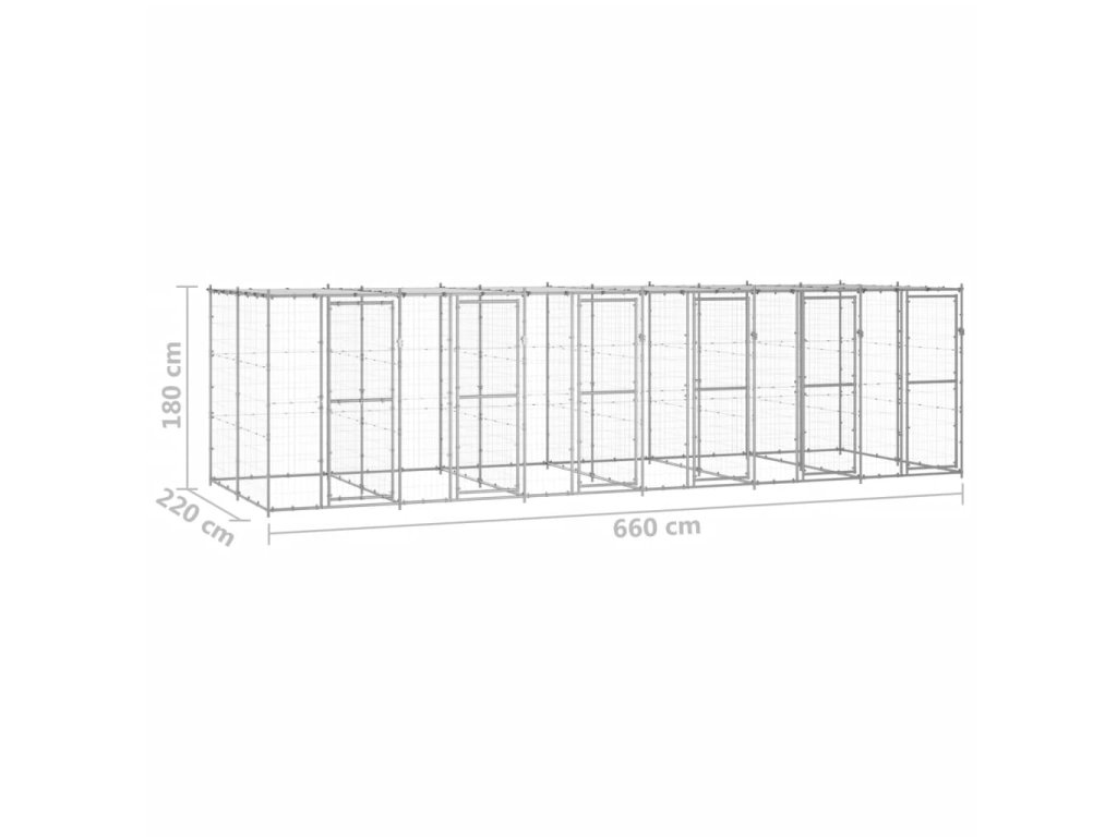 Táto psia búda poskytuje dostatok priestoru na cvičenie. Pletivo po celom obvode pomáha predchádzať nepleche a neočakávaným nehodám a zároveň umožňuje vetranie. Vďaka pevnej konštrukcii z pozinkovanej ocele je táto psia búda odolná a vyrobená tak, aby vydržala. Vyrobená z PE, priložená vrchná strieška je vodeodolná a odolná voči UV žiareniu. Dvere s pántmi a uzamykateľným západkovým systémom zaisťujú extra bezpečnosť a ochranu vašich psov.