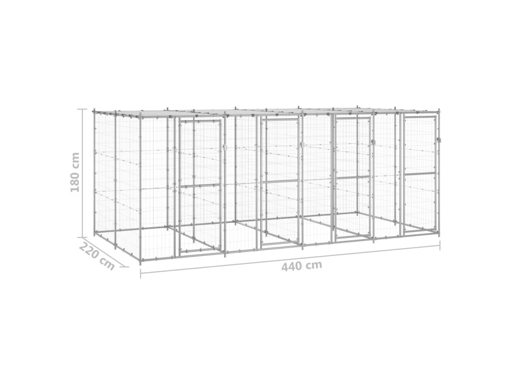 Táto psia búda poskytuje dostatok priestoru na cvičenie. Pletivo po celom obvode pomáha predchádzať nepleche a neočakávaným nehodám a zároveň umožňuje vetranie. Vďaka pevnej konštrukcii z pozinkovanej ocele je táto psia búda odolná a vyrobená tak, aby vydržala. Vyrobená z PE, priložená vrchná strieška je vodeodolná a odolná voči UV žiareniu. Dvere s pántmi a uzamykateľným západkovým systémom zaisťujú extra bezpečnosť a ochranu vašich psov.