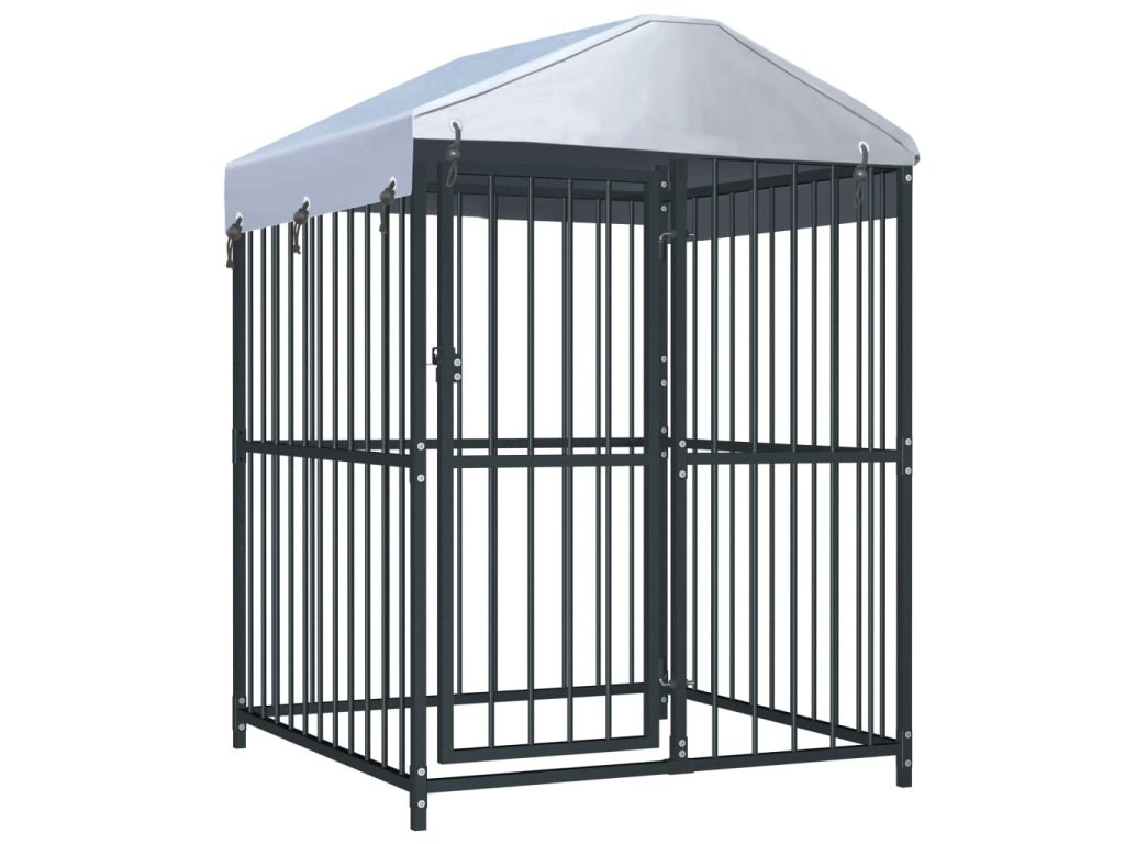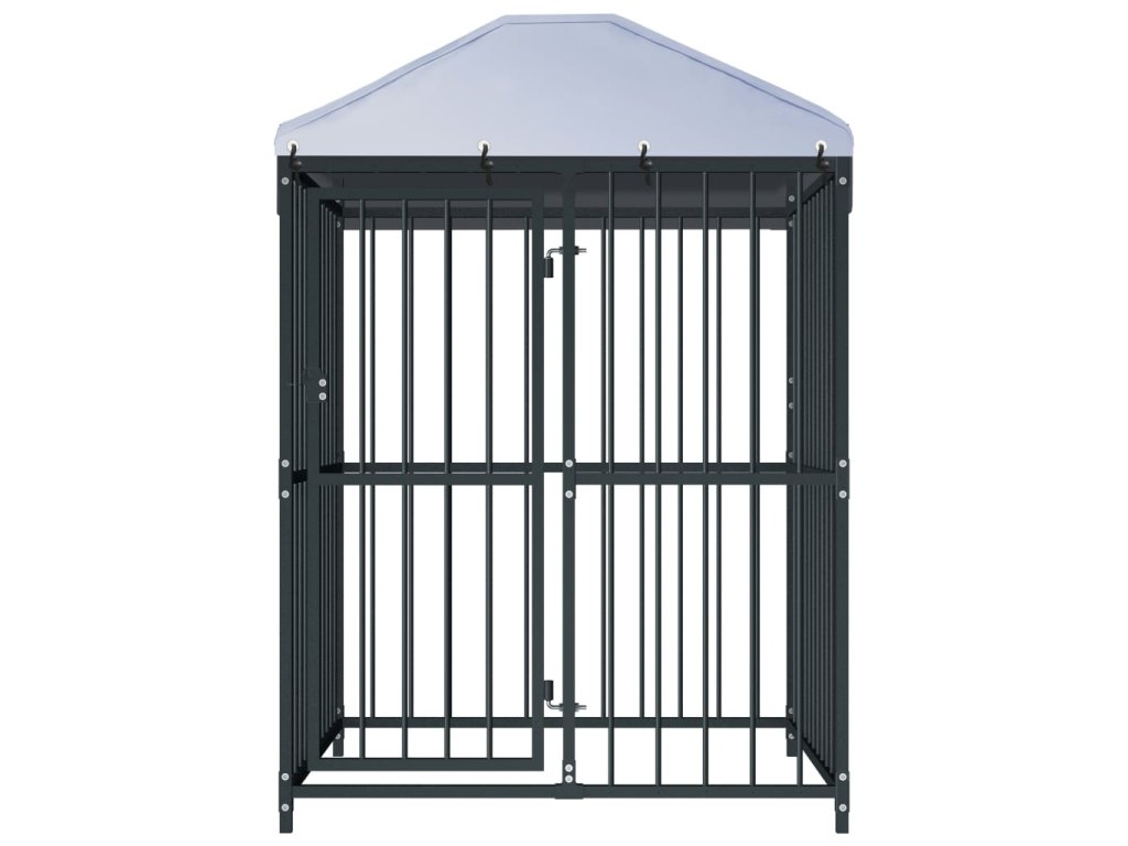 Táto veľká psia búda poskytuje dostatok priestoru na cvičenie, zatiaľ čo oceľové steny pomáhajú predchádzať nepleche a neočakávaným nehodám a zároveň umožňujú vetranie. Vďaka pevnej a odolnej oceľovej konštrukcii je táto psia búda odolná a postavená tak, aby vydržala. Súčasťou balenia je ohňovzdorná a UV chránená strecha vyrobená zo 100 % polyetylénu a chráni pred slnkom, dažďom, snehom a inými nepriaznivými poveternostnými podmienkami. Dvere s pántami majú uzamykateľný západkový systém, ktorý zaisťuje mimoriadnu bezpečnosť a ochranu vašich psov.