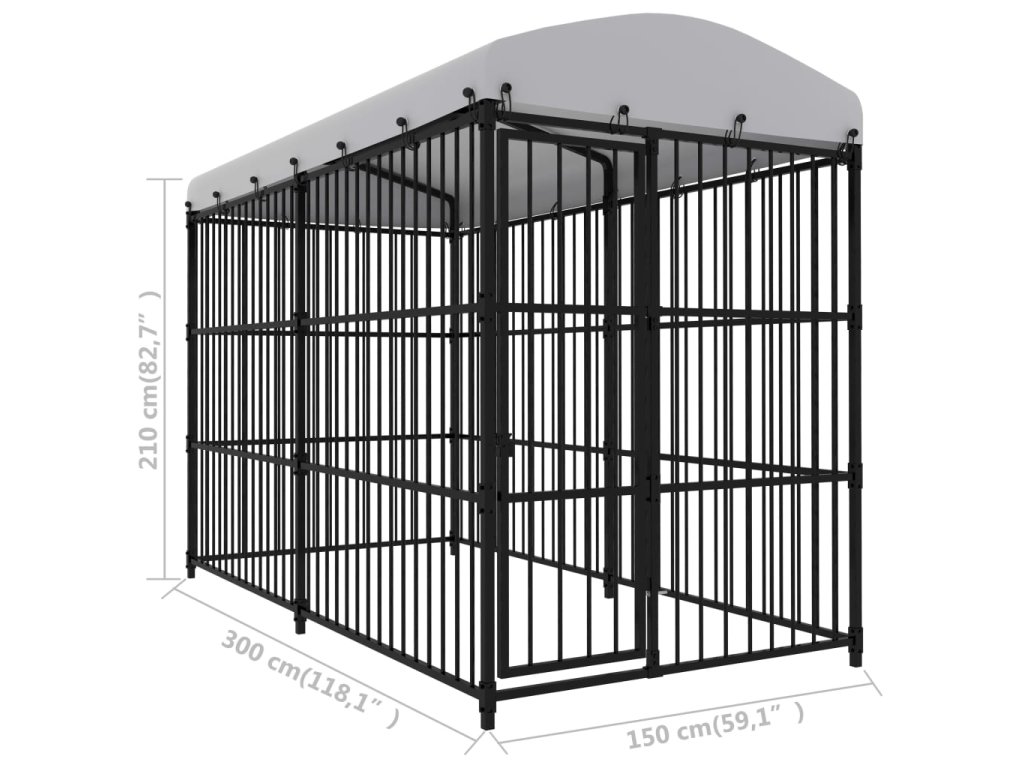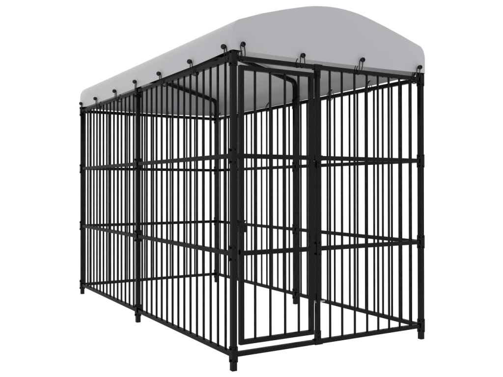 Táto všestranná a odolná búda pre psa ponúka mnoho využití: hranie, cvičenie, výcvik alebo jednoducho ochranu vášho psa. Bude to perfektný raj pre vašich chlpatých priateľov! Táto búda poskytuje dostatok priestoru na cvičenie, zatiaľ čo oceľové steny s tyčami pomáhajú predchádzať nepleche a neočakávaným nehodám a zároveň umožňujú vetranie. Vďaka pevnej oceľovej konštrukcii s práškovým nástrekom je táto kvalitná búda pre psa odolná a vyrobená tak, aby vydržala. Súčasťou baldachýnu je vrchná strieška odolná voči poveternostným vplyvom, čo poskytuje dobrú ochranu pred slnkom a dažďom. Okrem toho majú výklopné dvere uzamykateľný západkový systém, ktorý zaisťuje extra bezpečnosť a ochranu vašich psov. Táto búda sa ľahko montuje.
