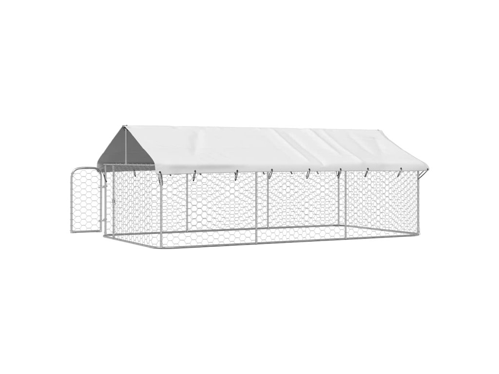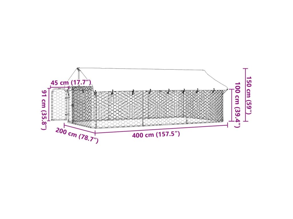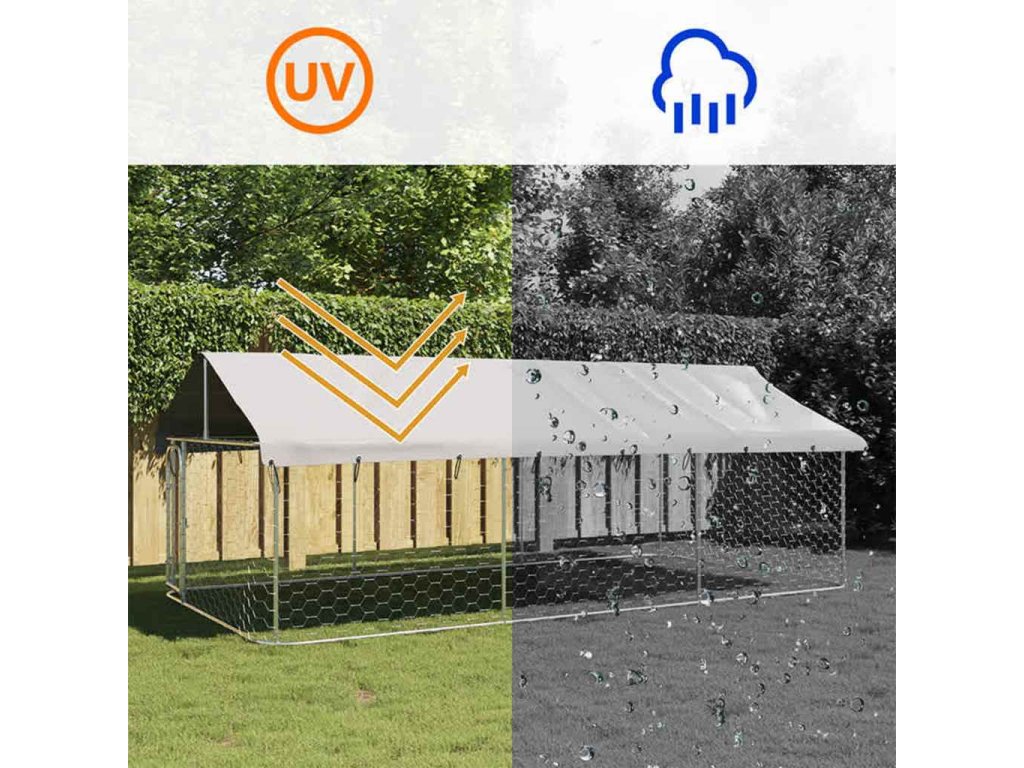 Tento veľký koterec poskytuje dostatok miesta na cvičenie psov a jeho steny sú tvorené pletivom, ktoré sa postará o to, aby z neho pes neušiel a aby nedošlo k nechceným úrazom a tiež o to, aby doň prúdilo dostatočné množstvo vzduchu. Vďaka stabilnej a odolnej konštrukcii z pozinkovanej ocele je táto kvalitná voliéra trvácna a má dlhú životnosť. Súčasťou balenia je aj strecha vyrobená zo 100% polyetylénu, ktorá je odolná voči ohňu, UV žiareniu a poveternostným vplyvom v podobe ostrého slnka, dažďa, snehu a podobne. Dvierka s pántmi poskytnú vašim psom vysokú bezpečnosť.