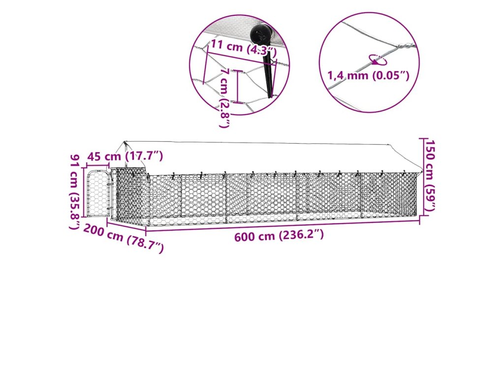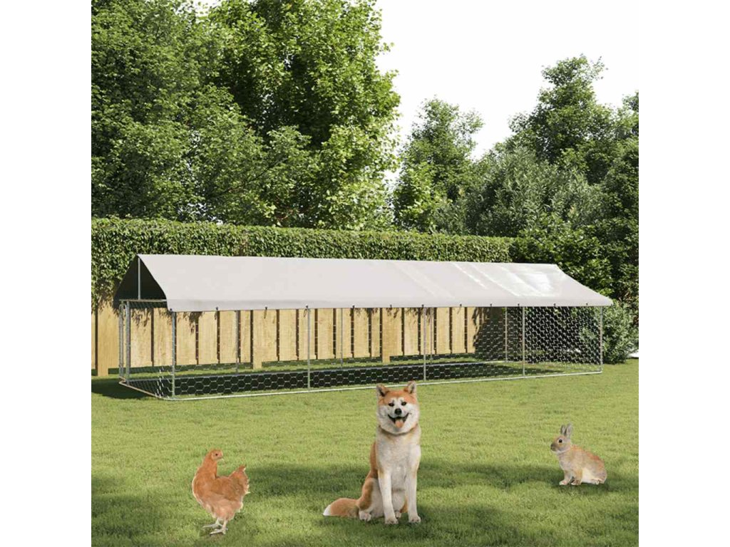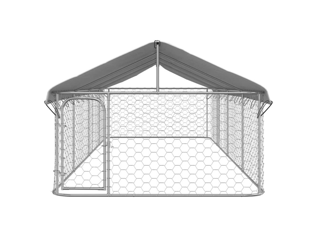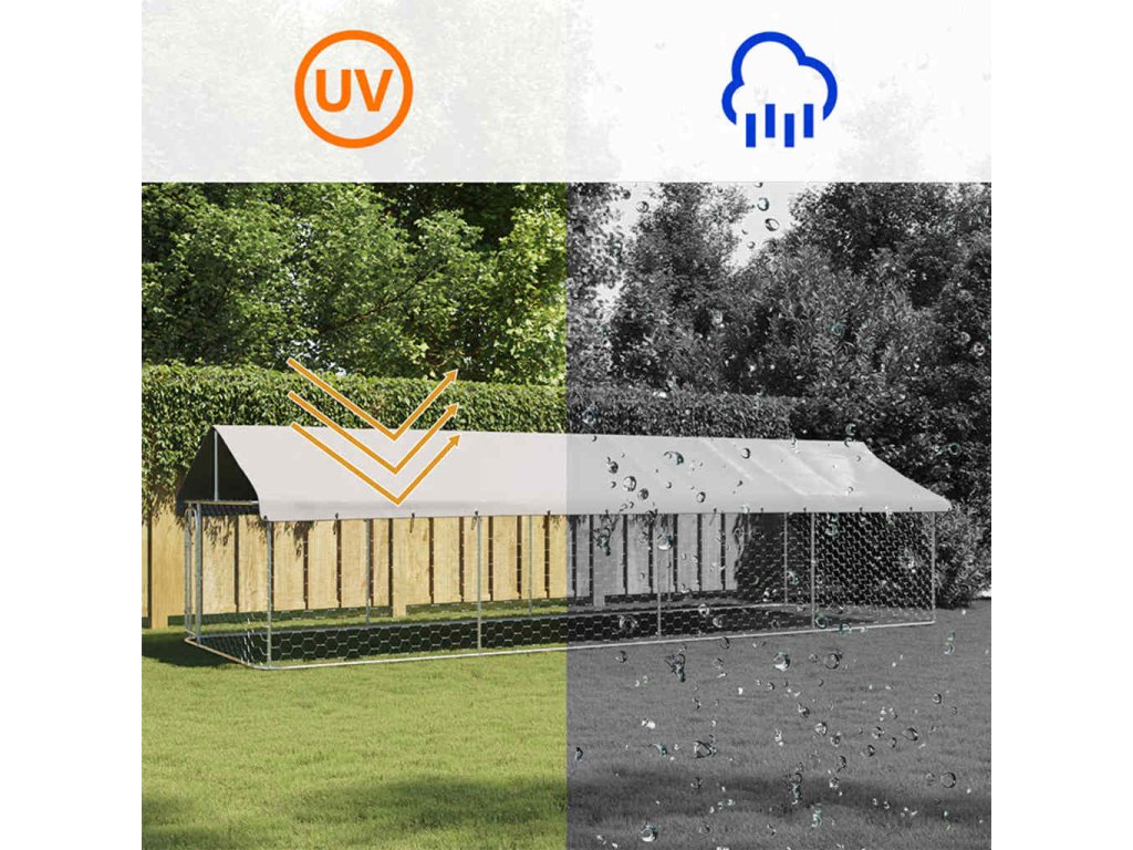 Tento veľký koterec poskytuje dostatok miesta na cvičenie psov a jeho steny sú tvorené pletivom, ktoré sa postará o to, aby z neho pes neušiel a aby nedošlo k nechceným úrazom a tiež o to, aby doň prúdilo dostatočné množstvo vzduchu. Vďaka stabilnej a odolnej konštrukcii z pozinkovanej ocele je táto kvalitná voliéra trvácna a má dlhú životnosť. Súčasťou balenia je aj strecha vyrobená zo 100% polyetylénu, ktorá je odolná voči ohňu, UV žiareniu a poveternostným vplyvom v podobe ostrého slnka, dažďa, snehu a podobne. Dvierka s pántmi poskytnú vašim psom vysokú bezpečnosť.