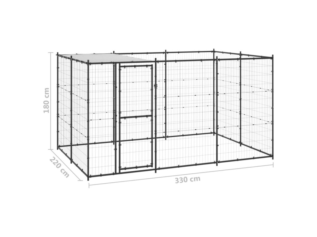 Táto psia búda poskytuje dostatok priestoru na cvičenie. Pletivo po celom obvode pomáha predchádzať nepleche a neočakávaným nehodám a zároveň umožňuje vetranie. Vďaka pevnej oceľovej konštrukcii s práškovým nástrekom je táto psia búda odolná a vyrobená tak, aby vydržala. Vyrobená z PE, priložená vrchná strieška je vodeodolná a odolná voči UV žiareniu. Dvere s pántmi a uzamykateľným západkovým systémom zaisťujú extra bezpečnosť a ochranu vašich psov.