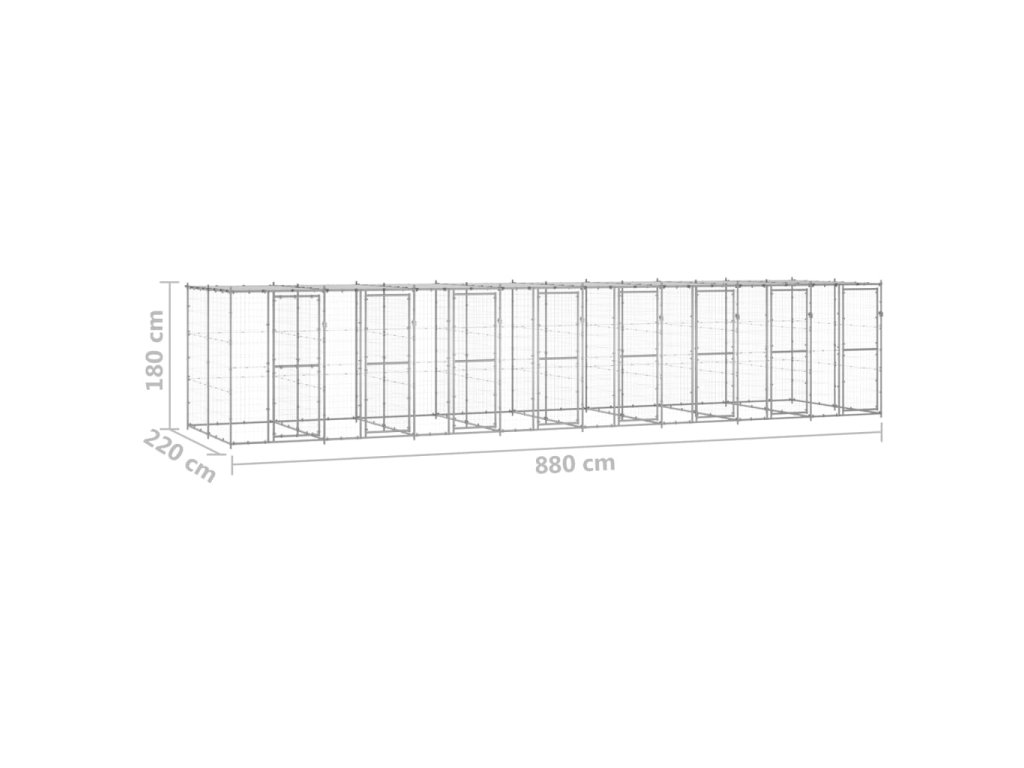 Táto psia búda poskytuje dostatok priestoru na cvičenie. Pletivo po celom obvode pomáha predchádzať nepleche a neočakávaným nehodám a zároveň umožňuje vetranie. Vďaka pevnej konštrukcii z pozinkovanej ocele je táto psia búda odolná a vyrobená tak, aby vydržala. Vyrobená z PE, priložená vrchná strieška je vodeodolná a odolná voči UV žiareniu. Dvere s pántmi a uzamykateľným západkovým systémom zaisťujú extra bezpečnosť a ochranu vašich psov.