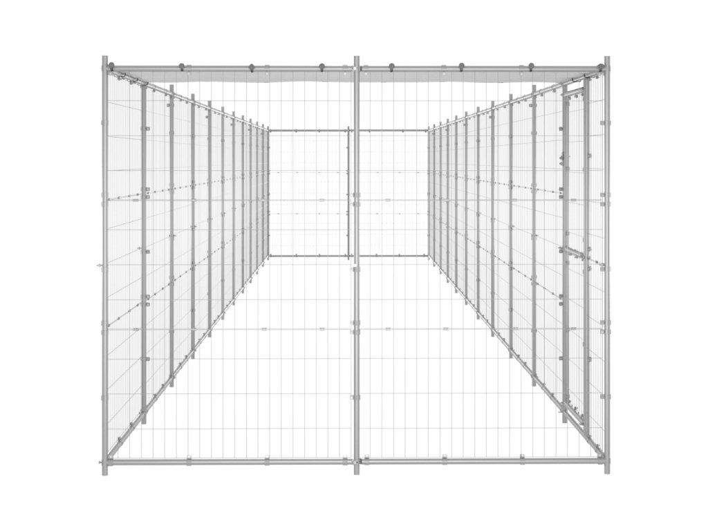 Táto psia búda poskytuje dostatok priestoru na cvičenie. Pletivo po celom obvode pomáha predchádzať nepleche a neočakávaným nehodám a zároveň umožňuje vetranie. Vďaka pevnej konštrukcii z pozinkovanej ocele je táto psia búda odolná a vyrobená tak, aby vydržala. Vyrobená z PE, priložená vrchná strieška je vodeodolná a odolná voči UV žiareniu. Dvere s pántmi a uzamykateľným západkovým systémom zaisťujú extra bezpečnosť a ochranu vašich psov.