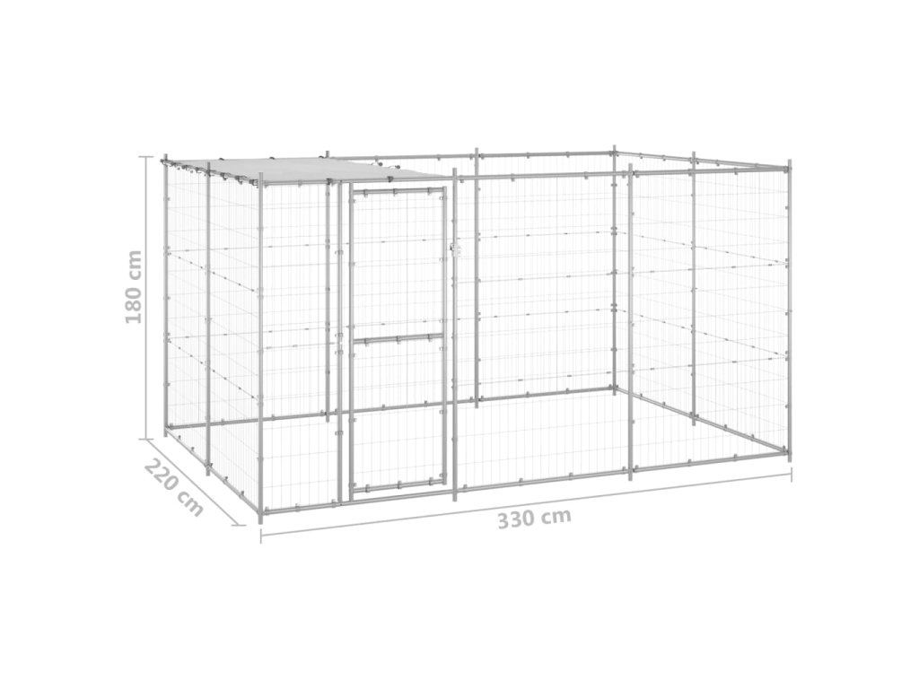 Táto psia búda poskytuje dostatok priestoru na cvičenie. Pletivo po celom obvode pomáha predchádzať nepleche a neočakávaným nehodám a zároveň umožňuje vetranie. Vďaka pevnej konštrukcii z pozinkovanej ocele je táto psia búda odolná a vyrobená tak, aby vydržala. Vyrobená z PE, priložená vrchná strieška je vodeodolná a odolná voči UV žiareniu. Dvere s pántmi a uzamykateľným západkovým systémom zaisťujú extra bezpečnosť a ochranu vašich psov.