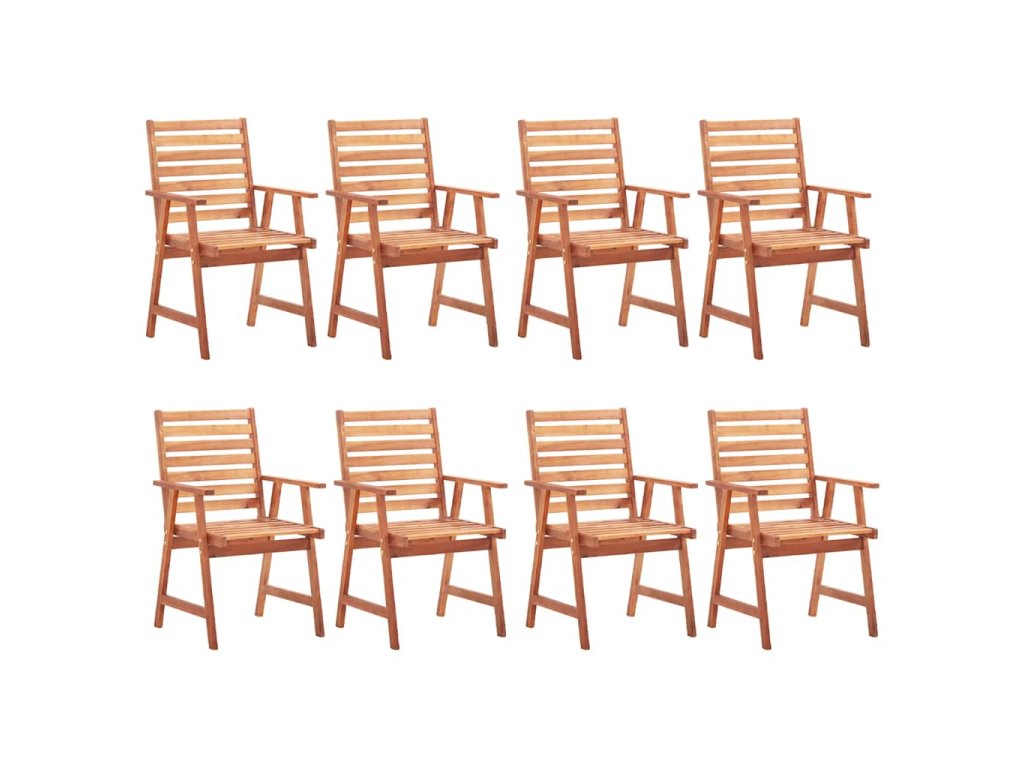 Tieto záhradné stoličky sú vyrobené z masívneho akáciového dreva, tropického tvrdého dreva, ktoré je odolné voči poveternostným vplyvom a trvácne pre roky používania. Povrch upravený olejom sa ľahko čistí vlhkou handričkou. Lamelový dizajn jej dáva rustikálne čaro. Navyše podložka poskytuje dodatočné pohodlie počas sedenia. Je vyrobená zo 100% polyesteru, ktorý je upravený tak, aby bol vode odolný. Každý vankúš má dve sady povrázkov, ktorými sa pevne pripevní k stoličke.