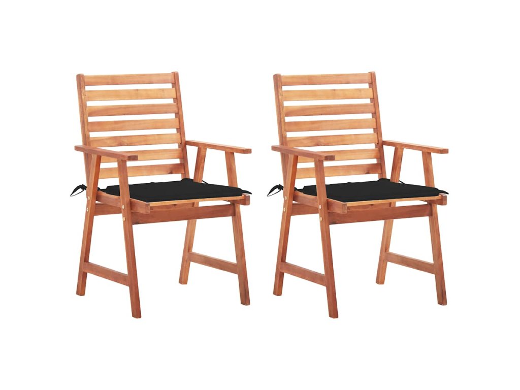 Tieto záhradné stoličky sú vyrobené z masívneho akáciového dreva, tropického tvrdého dreva, ktoré je odolné voči poveternostným vplyvom a trvácne pre roky používania. Povrch upravený olejom sa ľahko čistí vlhkou handričkou. Lamelový dizajn jej dáva rustikálne čaro. Navyše podložka poskytuje dodatočné pohodlie počas sedenia. Je vyrobená zo 100% polyesteru, ktorý je upravený tak, aby bol vode odolný. Každý vankúš má dve sady povrázkov, ktorými sa pevne pripevní k stoličke.