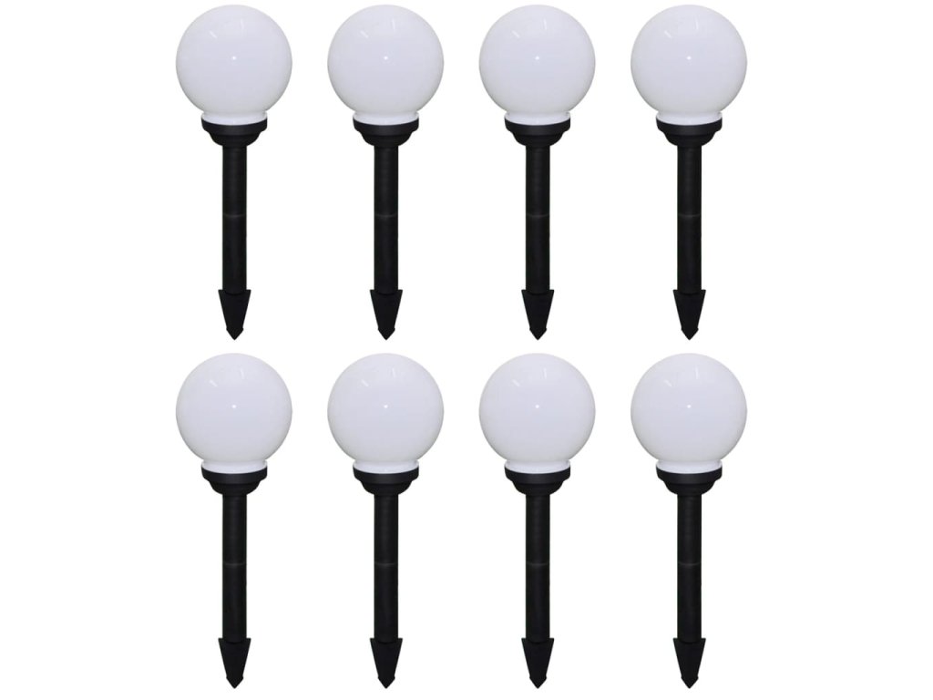 Táto sada 8 solárnych LED svetiel sa dodáva spolu s trúbkami, zapichovacími hrotmi a dobíjateľnými batériami. Predstavuje ideálne dekoratívne osvetlenie do záhrady, na terasu, k chodníku, do dvora či na balkón. Každá lampa v tvare gule je vyrobená z trvácneho plastu, a tak vydržia niekoľko rokov. V každej guľatej solárnej lampe sa nachádzajú dve 0,1 W LED diódy, a tak vám jedna lampa poskytne osvetlenie zodpovedajúce 0,2 W, čo znamená pre celú sadu 1,6 W.