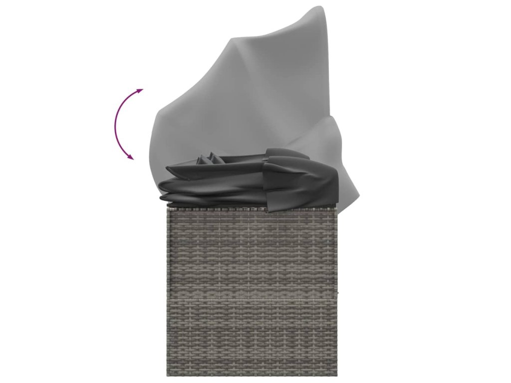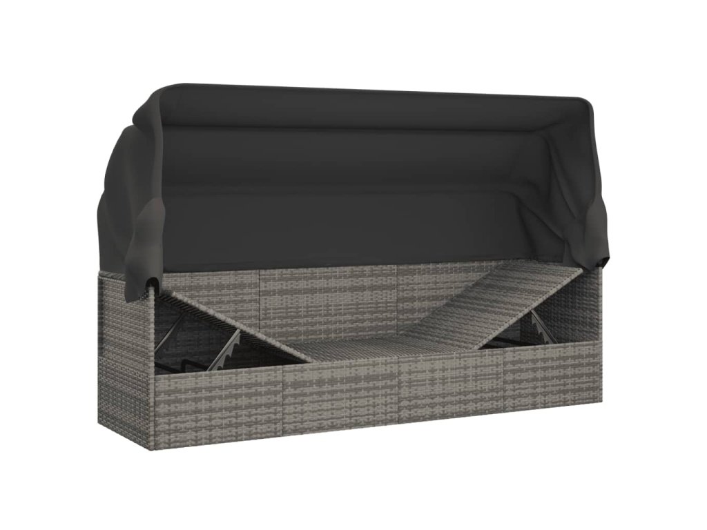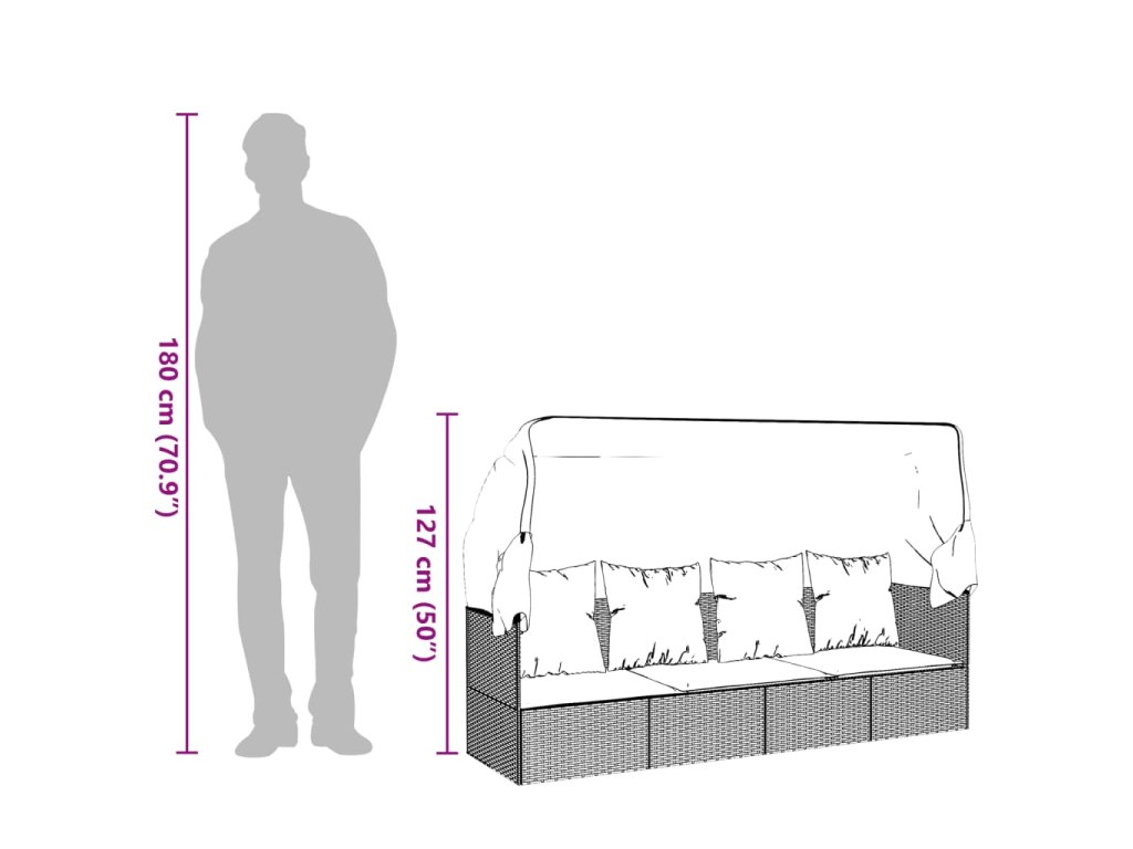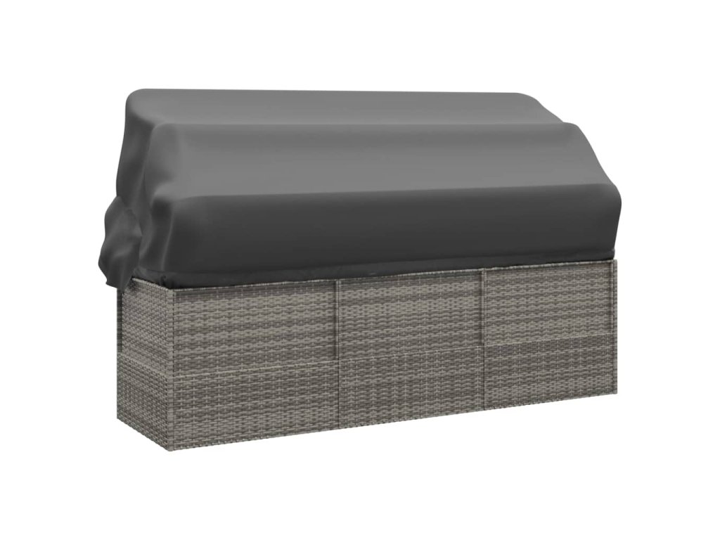Toto pohodlné vonkajšie lôžko so strechou a vankúšmi je dokonalou kombináciou štýlu a funkčnosti.