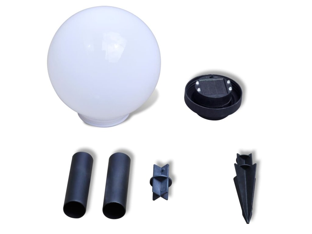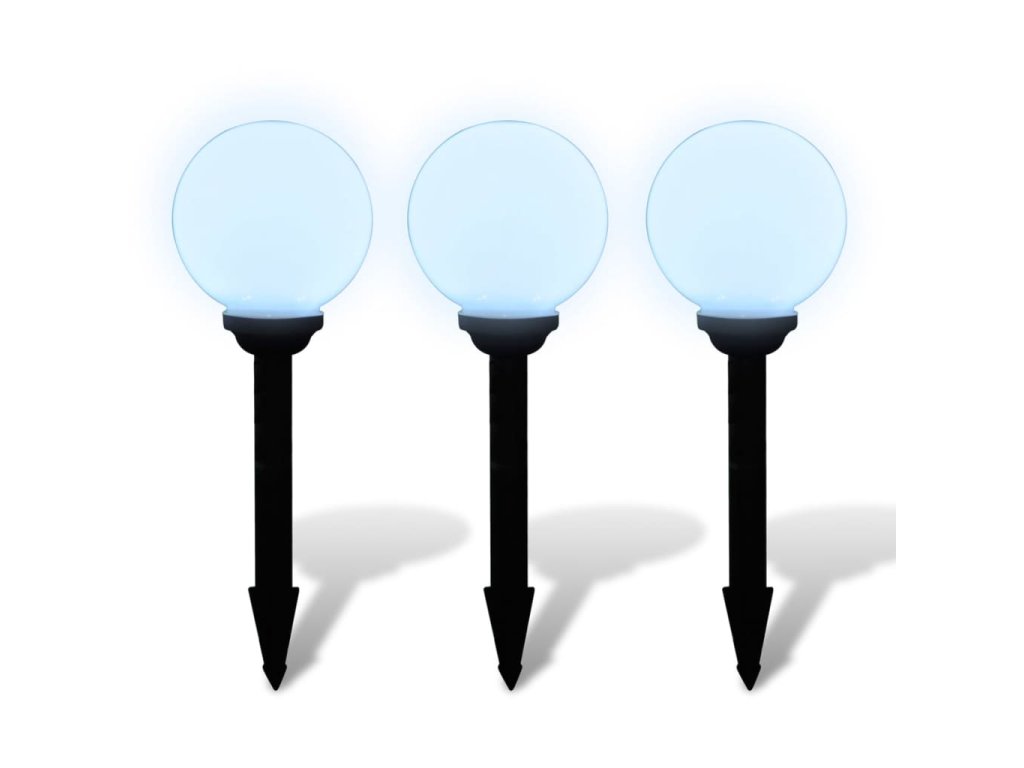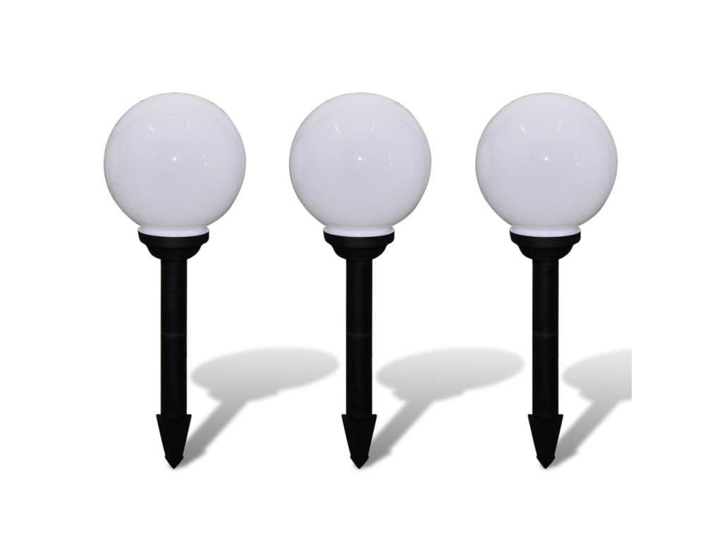 Táto 3-dielna sada solárnych LED svetiel sa dodáva spolu s trúbkami, hrotmi na zapichnutie do zeme a dobíjateľnými batériami. Predstavuje perfektné dekoratívne osvetlenie do záhrady, na terasu, k chodníku, do dvora či na balkón. Každé solárne svetlo v tvare gule je vyrobené z trvácneho plastu, a tak vám bude slúžiť dlhé roky. Vo vnútri každej solárnej lampy v tvare gule sa nachádzajú štyri 0,1 W LED diódy, ktoré poskytujú osvetlenie o sile 0,4 W. Celá sada teda dokáže vydať svetlo o sile 1,2 W.