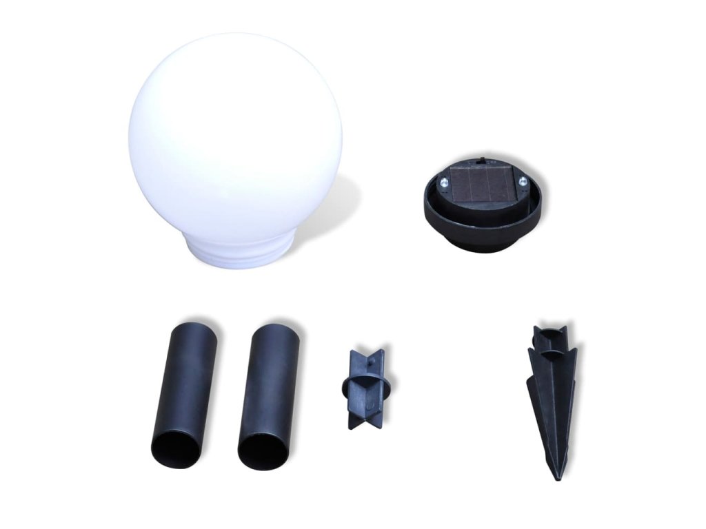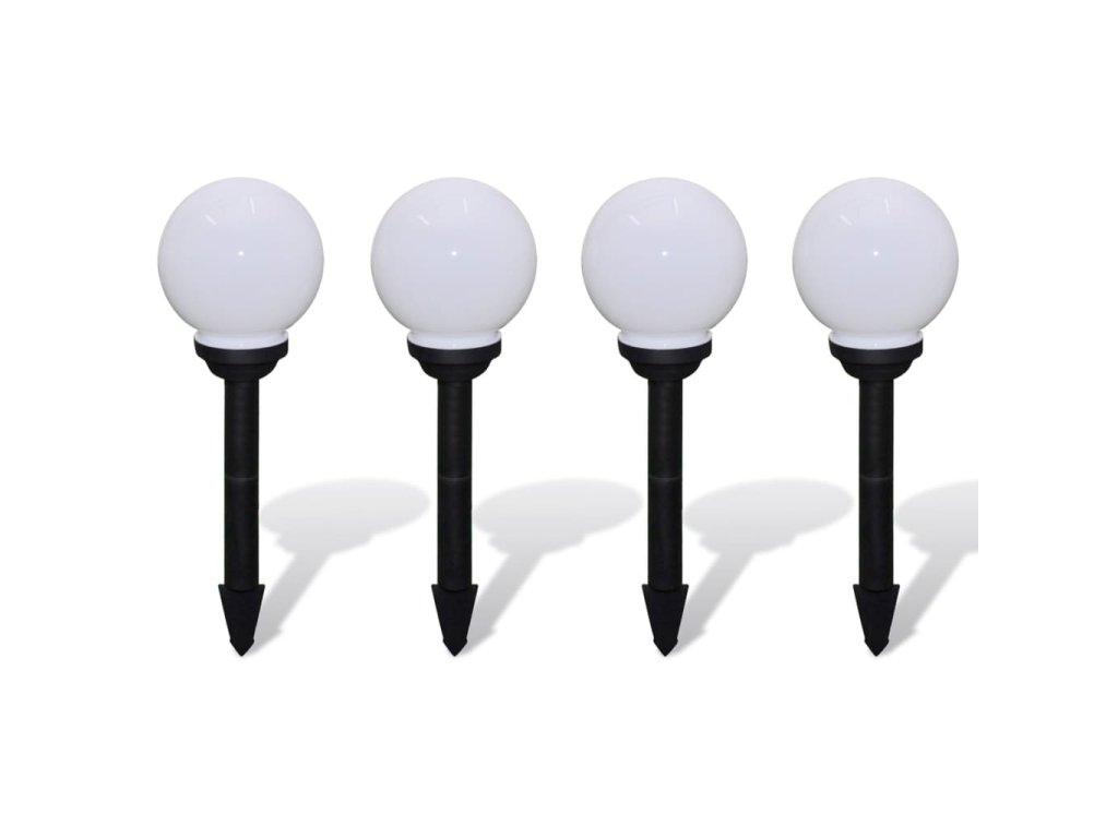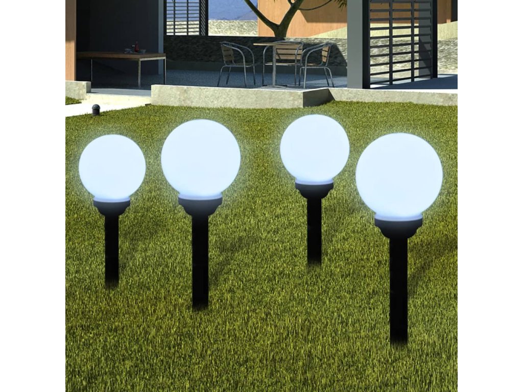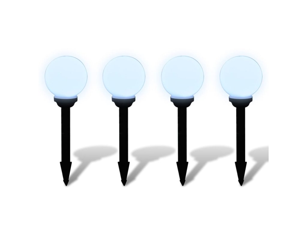 Táto 4-dielna sada solárnych LED svetiel sa dodáva spolu s trúbkami, hrotmi na zapichnutie do zeme a dobíjateľnými batériami. Predstavuje perfektné dekoratívne osvetlenie do záhrady, na terasu, k chodníku, do dvora či na balkón. Každé solárne svetlo v tvare gule je vyrobené z trvácneho plastu, a tak vám bude slúžiť dlhé roky. Vo vnútri každej solárnej lampy v tvare gule sa nachádzajú dve 0,1 W LED diódy, ktoré poskytujú osvetlenie o sile 0,2 W. Celá sada teda dokáže vydať svetlo o sile 0,8 W.
