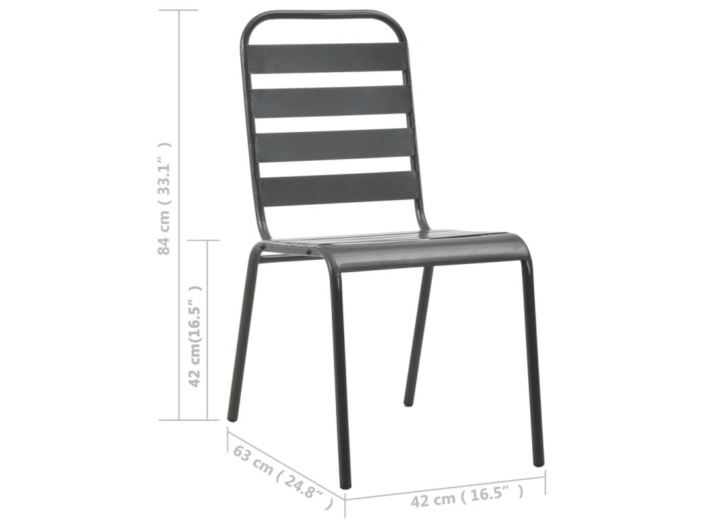 Vysokokvalitné záhradné stoličky sú vyrobené z pevnej ocele, ktorá bola ošetrená elektroforetickou a následne aj práškovou povrchovou úpravou. Aplikácia e-náteru (elektroforetického náteru) slúži na to, aby boli stôl a stoličky odolné voči hrdzi, poveternostným vplyvom a dlhodobému používaniu v exteriéri a prášková povrchová úprava napomáha zvyšovať ich trvácnosť. Jedálenské stoličky sa dajú poukladať na seba, aby nezaberali veľa miesta, keď sa nepoužívajú.