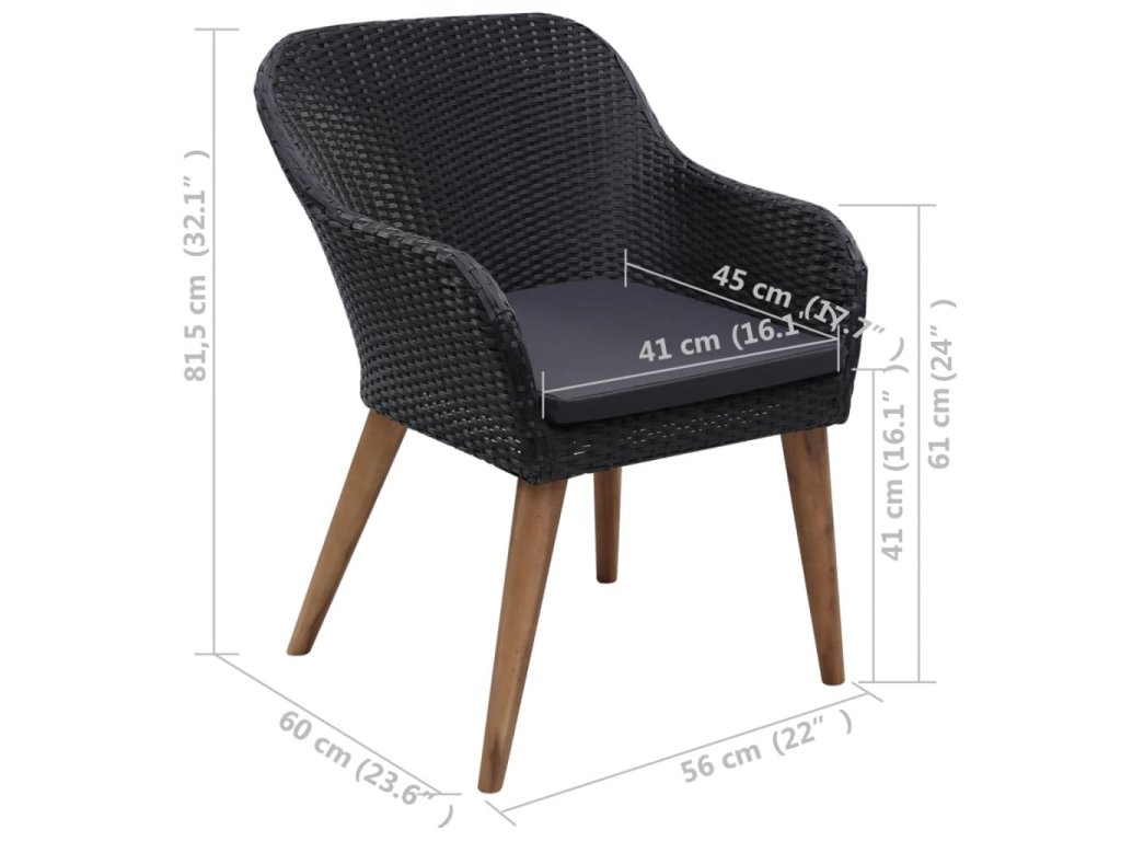 - Materiál: Polyratan + oceľový rám s práškovou povrchovou úpravou + akáciový masív s olejovým náterom
