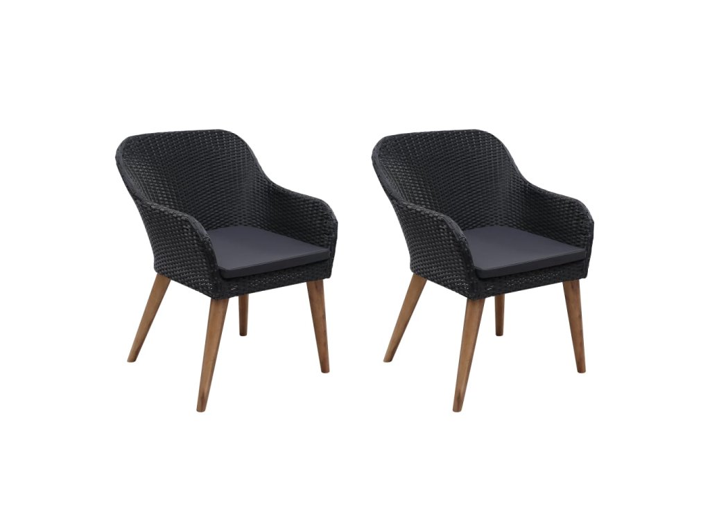 Stoličky sú vyrobené z PE ratanu, ktorý je ľahký, vodovzdorný, dobre sa čistí a je určený na celoročné používanie v exteriéri. Oceľové rámy s práškovou povrchovou úpravou poskytujú vynikajúcu stabilitu a mimoriadne dlhú životnosť. Ergonomicky tvarované a nahusto vyčalúnené odnímateľné podložky sú vyplnené molitanom a poskytujú optimálne pohodlie pri sedení. Polyesterové poťahy si nevyžadujú náročnú údržbu a stačí ich jednodcho zvliecť a oprať. Stoličky sa jednoducho montujú. V balení sa nachádzajú 2 kreslá a 2 podložky na sedadlo.