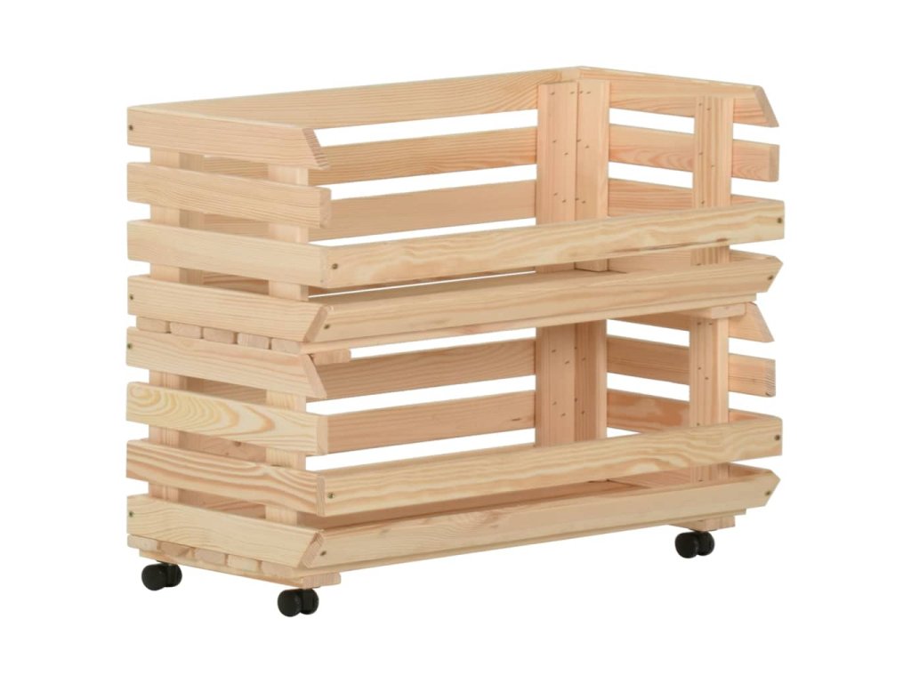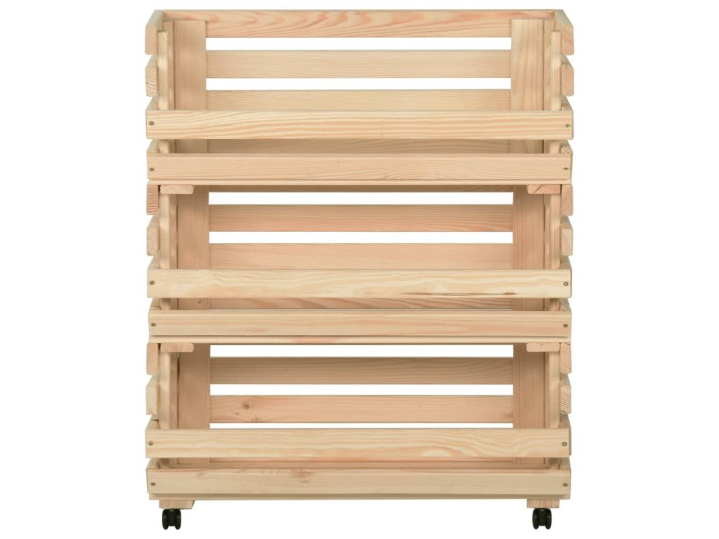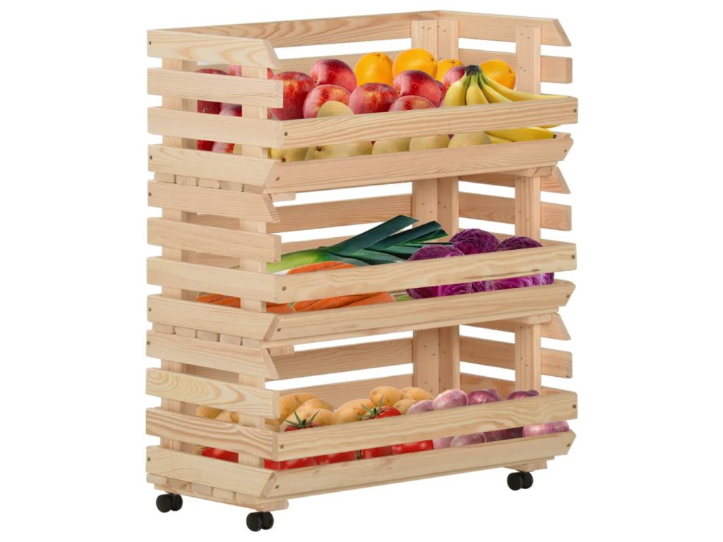 Tento box na ovocie je vyrobený z masívneho borovicového dreva, takže je stabilný a odolný. Úložný vozík má 3 priehradky na umiestnenie potravín, fliaš a iných potrebných vecí na dosah ruky. Vďaka odnímateľnej konštrukcii môžete každú poličku používať samostatne podľa potreby. Okrem toho je kuchynský vozík vybavený flexibilnými kolieskami na jednoduchý presun.