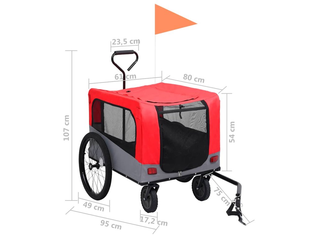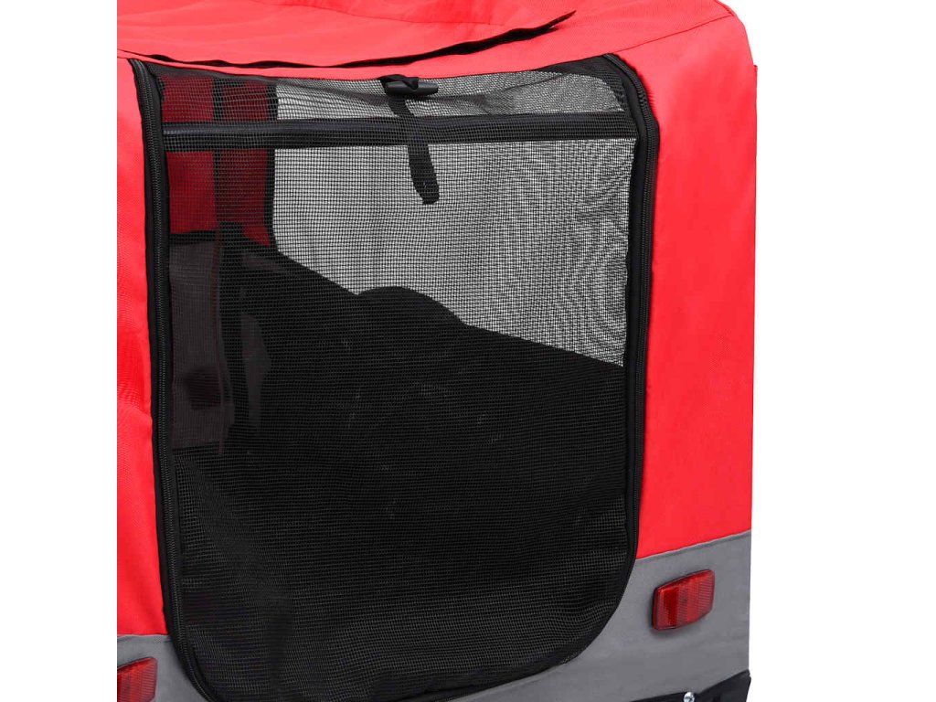 Vozík pre domáce zvieratá má pevný oceľový rám a je vyrobený z oxfordskej látky, ktorá je trvácna a ľahko sa udržiava. Sieťované okienka po oboch stranách umožňujú maximálne prúdenie vzduchu, zatiaľ čo predná aj zadná časť ponúkajú praktický vstup do vozíka. Príves na bicykel je odpružený, aby bola jazda v ňom čo najhladšia. Predné koleso je otočné v rozsahu 360 stupňov, čo využijete najmä pri prechádzkach. Rotačný bezpečnostný kĺb sa postará o to, aby sa vozík neprevrátil ani v prípade, ak bicykel spadne. Vozík pre domáce zvieratá má rýchloupínacie zariadenie na jednoduché pripevnenie k bicyklu. Vozík sa dá zložiť, čím sa ušetrí priestor, keď sa nepoužíva.