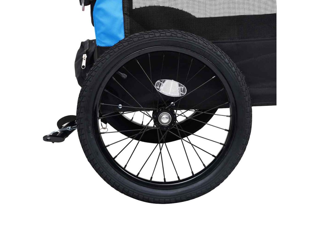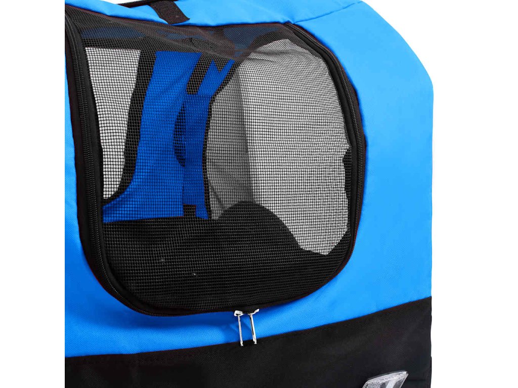 Vozík pre domáce zvieratá má pevný oceľový rám a je vyrobený z oxfordskej látky, ktorá je trvácna a ľahko sa udržiava. Sieťované okienka po oboch stranách umožňujú maximálne prúdenie vzduchu, zatiaľ čo predná aj zadná časť ponúkajú praktický vstup do vozíka. Príves na bicykel je odpružený, aby bola jazda v ňom čo najhladšia. Predné koleso je otočné v rozsahu 360 stupňov, čo využijete najmä pri prechádzkach. Rotačný bezpečnostný kĺb sa postará o to, aby sa vozík neprevrátil ani v prípade, ak bicykel spadne. Vozík pre domáce zvieratá má rýchloupínacie zariadenie na jednoduché pripevnenie k bicyklu. Vozík sa dá zložiť, čím sa ušetrí priestor, keď sa nepoužíva.