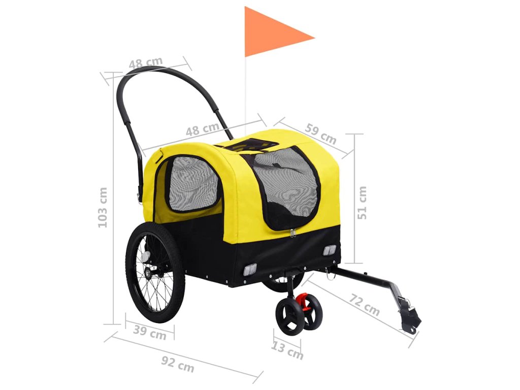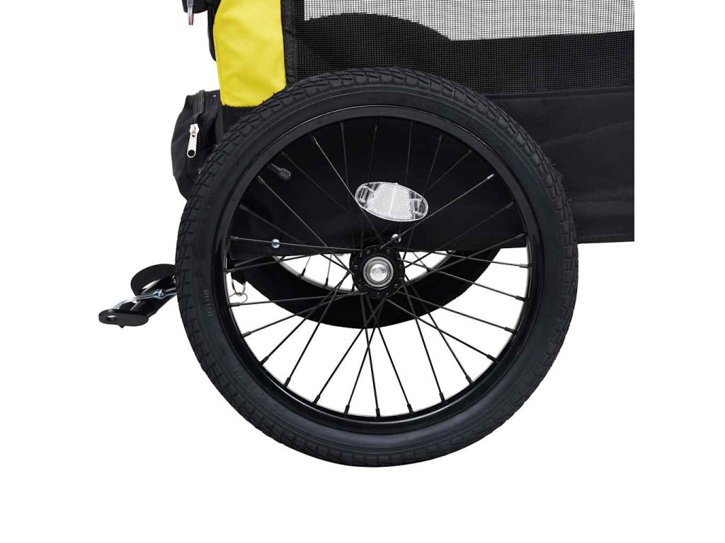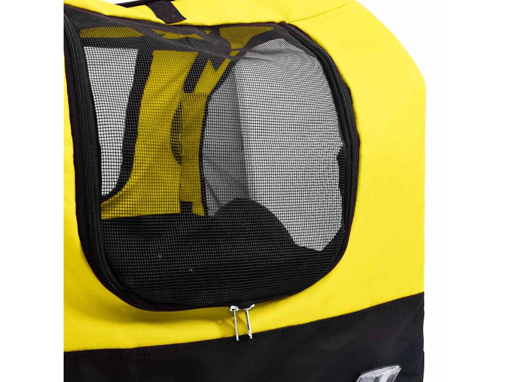 Vozík pre domáce zvieratá má pevný oceľový rám a je vyrobený z oxfordskej látky, ktorá je trvácna a ľahko sa udržiava. Sieťované okienka po oboch stranách umožňujú maximálne prúdenie vzduchu, zatiaľ čo predná aj zadná časť ponúkajú praktický vstup do vozíka. Príves na bicykel je odpružený, aby bola jazda v ňom čo najhladšia. Predné koleso je otočné v rozsahu 360 stupňov, čo využijete najmä pri prechádzkach. Rotačný bezpečnostný kĺb sa postará o to, aby sa vozík neprevrátil ani v prípade, ak bicykel spadne. Vozík pre domáce zvieratá má rýchloupínacie zariadenie na jednoduché pripevnenie k bicyklu. Vozík sa dá zložiť, čím sa ušetrí priestor, keď sa nepoužíva.