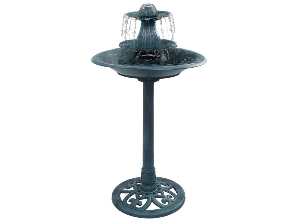 Táto vtáčia fontána, navrhnutá s viacerými vrstvami, má elegantný a klasický vzhľad. Vďaka integrovanému čerpadlu sa budú môcť vtáky vo vašej záhrade ideálne piť a okúpať sa aj počas horúcich letných dní. Tento vtáčí kúpeľ je vyrobený z trvácneho plastu odolného voči poveternostným vplyvom a preto je vhodný na vonkajšie použitie po celý rok.