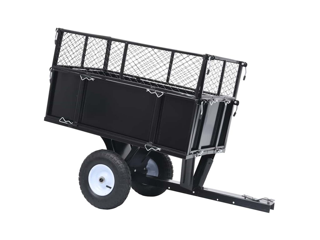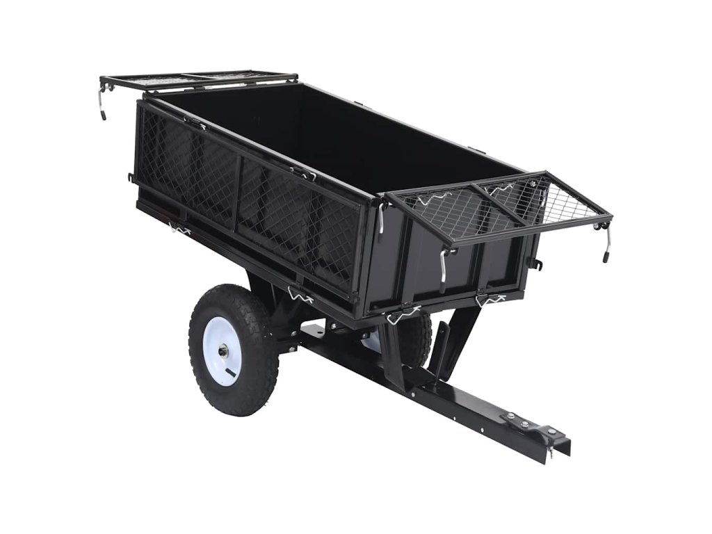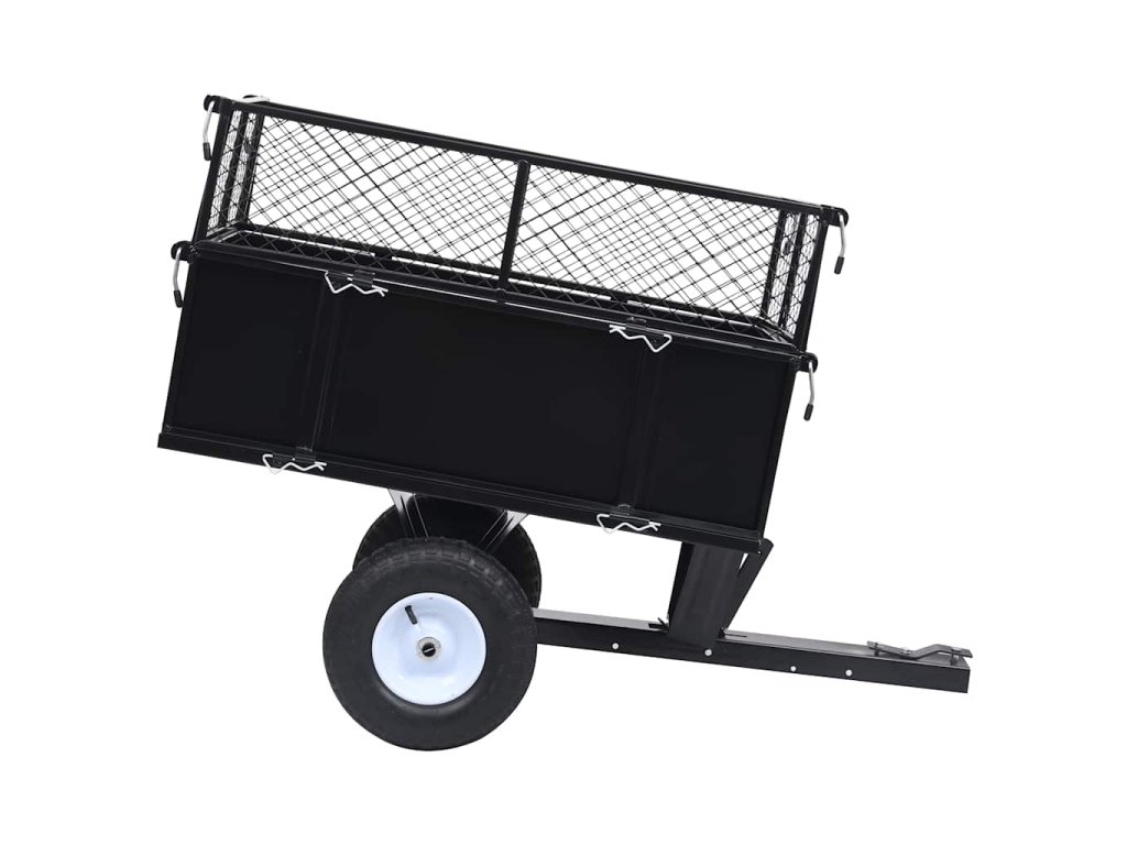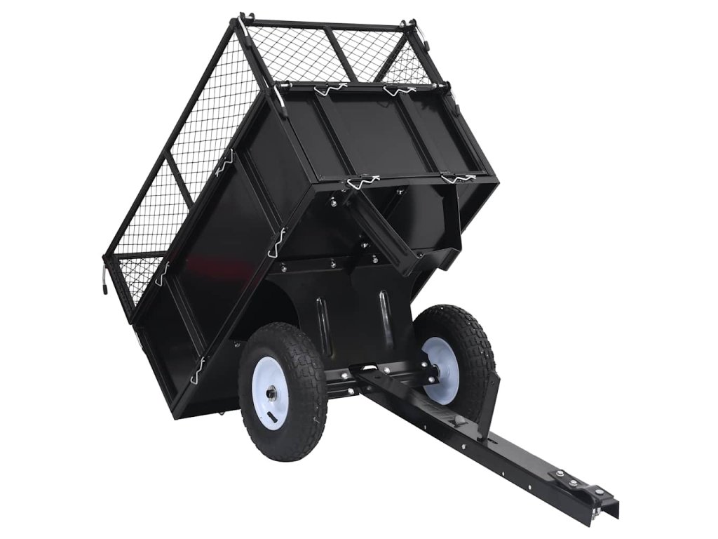 Tento vyklápací prívesný vozík na kosačku sa dá pripevniť na všetky bežné kosačky. Poskytne vám ideálneho pomocníka na náročné práce v záhrade.