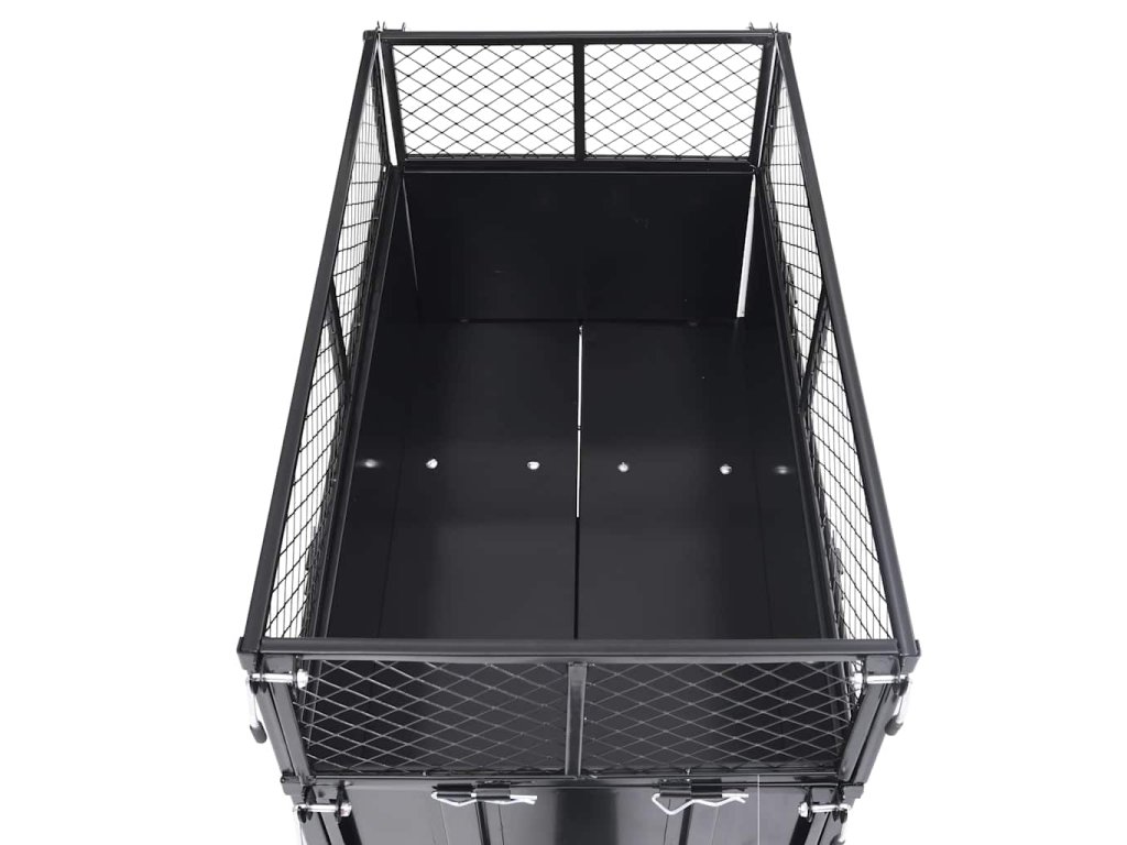 Tento záhradný príves má nosnosť až 150 kg. Výška môže byť predĺžená až na 22 cm. Bočné steny sa dajú zložiť dole a vyklopiť dozadu. Balenie obsahuje aj univerzálne spojovacie zariadenie na pripevnenie vozíka (pomocou skrutiek).