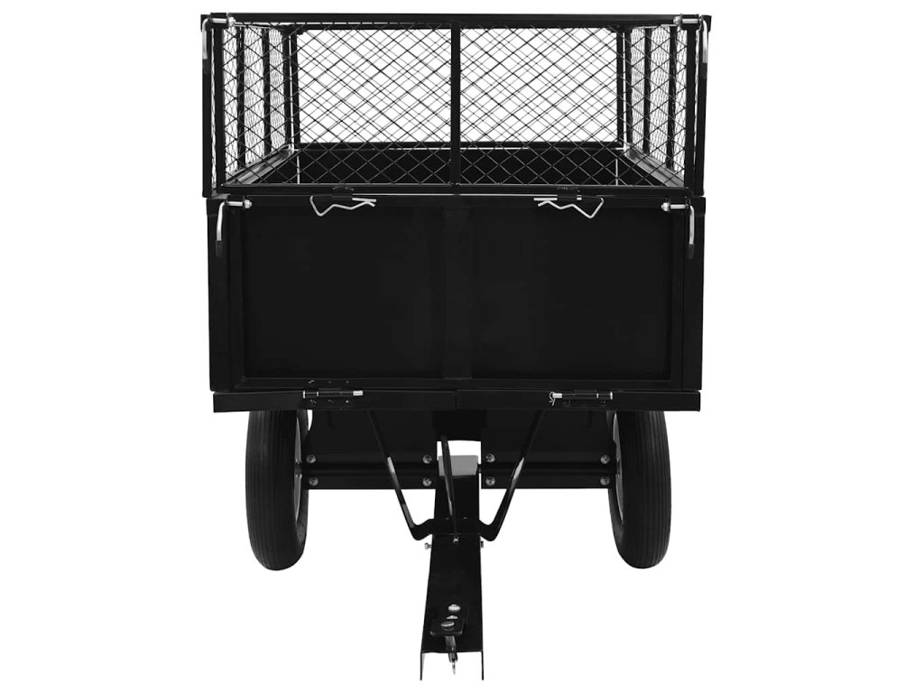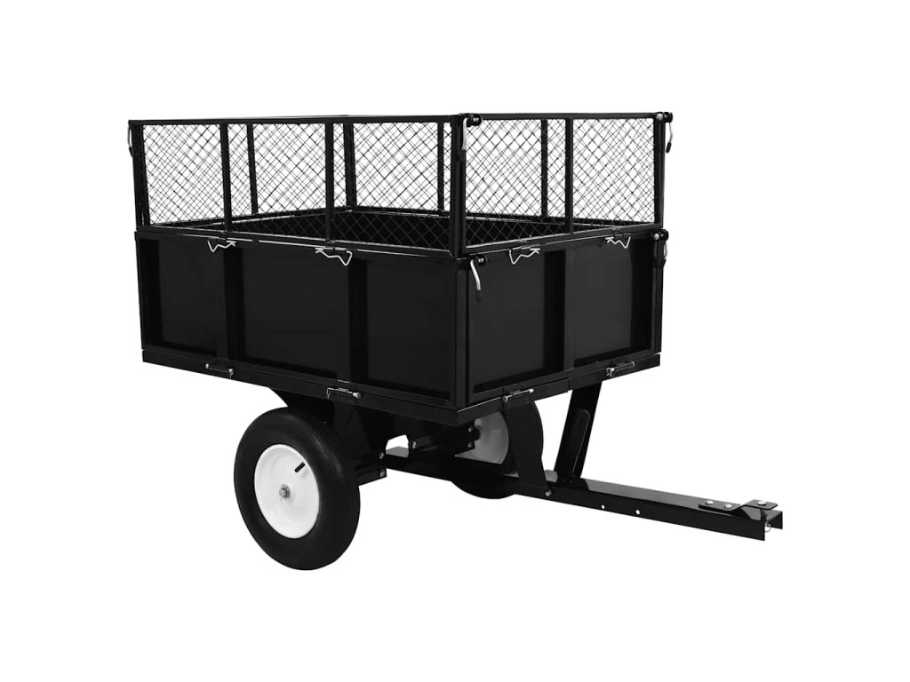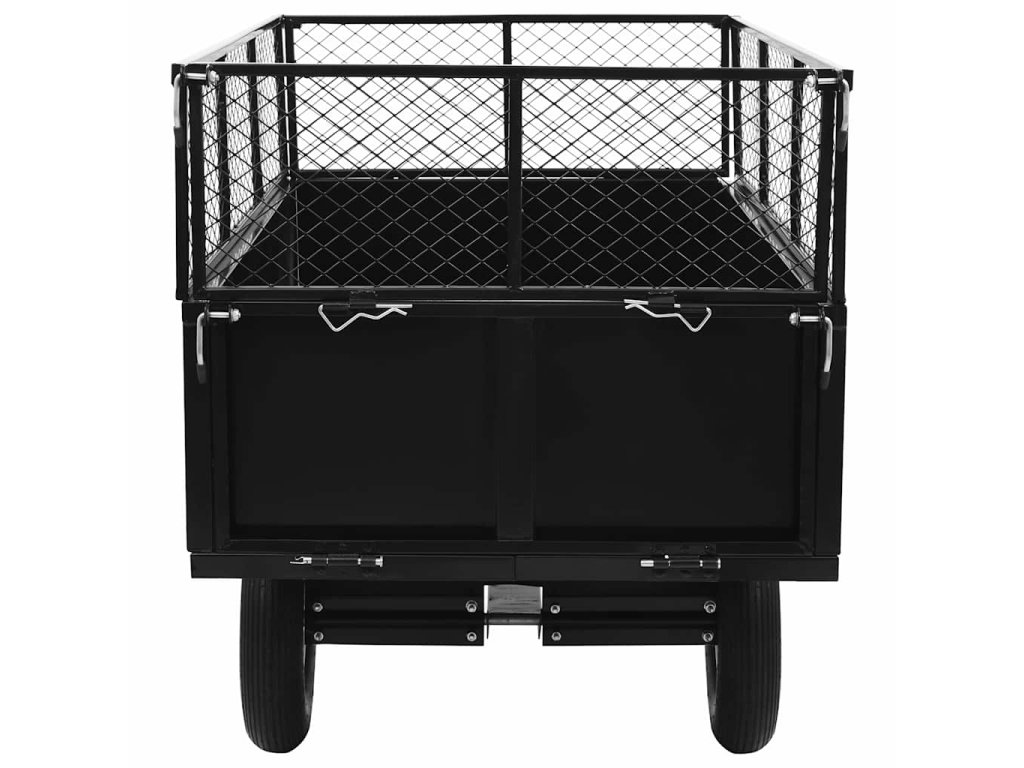 Tento záhradný príves má nosnosť až 300 kg. Výška môže byť predĺžená o 30 cm. Bočné steny sa dajú zložiť dole a vyklopiť dozadu. Vrátane univerzálneho spojovacieho zariadenia na pripevnenie vozíka (pomocou skrutiek).