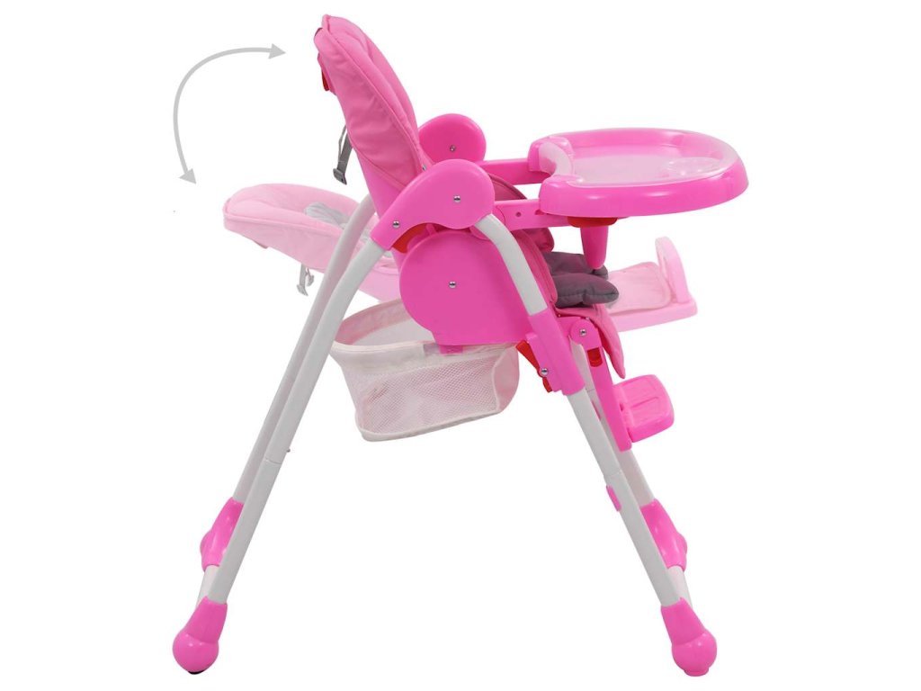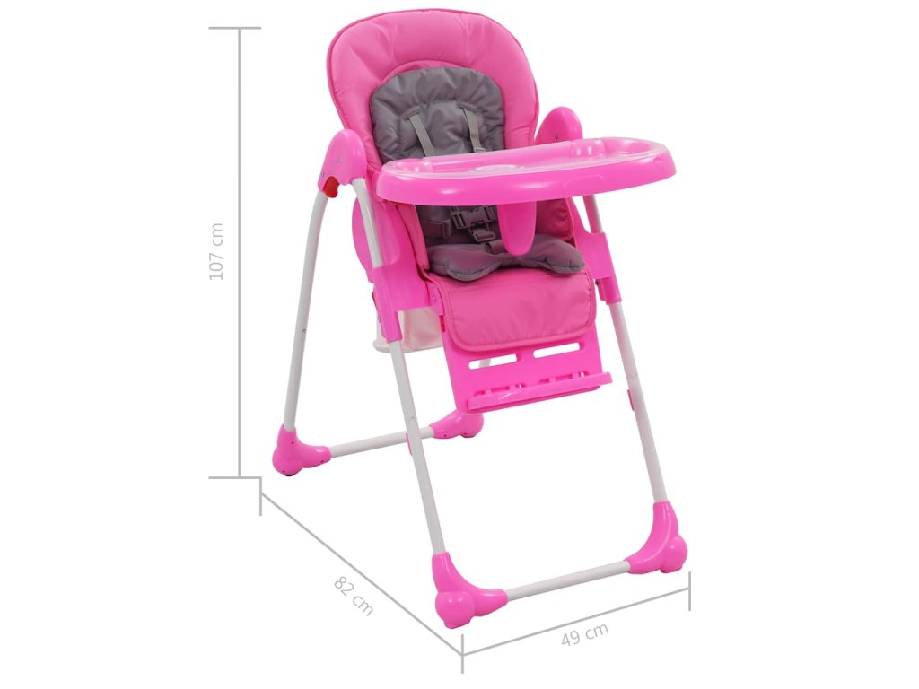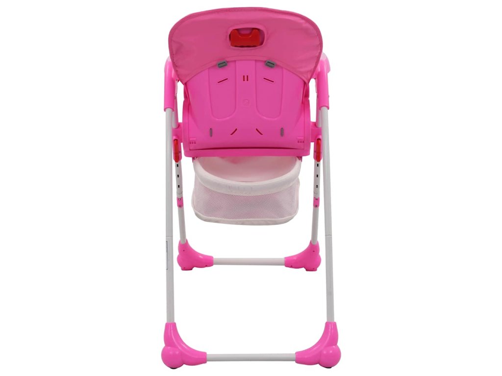 Je vyrobená z oceľového rámu a pevného plastu pre dlhú životnosť a pevnosť, čo vášmu dieťaťu poskytne veľkú podporu. Polstrovaná sedačka s mäkkým čalúnením a 5-bodovým postrojom zaisťuje väčšie pohodlie a bezpečnosť počas jedla. Táto vysoká stolička sa dá sklopiť do 3 polôh a poskytne tak dieťaťu pohodlný priestor. Nastaviteľné opierky nôh a nastaviteľná výška tiež poskytujú dodatočné pohodlie počas sedenia. Podnos na potraviny je odnímateľný pre ľahké čistenie. Na spodnej časti má odkladací kôš na uchovávanie detských potrieb, ako sú detské hračky, plienky, vreckovky atď. Okrem toho, vďaka zadným kolieskam môžete stoličku veľmi ľahko premiestňovať.