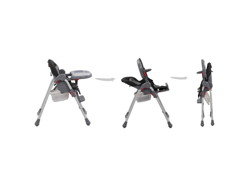Dá sa nastaviť v priebehu niekoľkých sekúnd a má nastaviteľnú opierku pre malé nožičky. Vďaka kompaktnému dizajnu sa dá táto vysoká stolička rýchlo sklopiť, aby bola uskladnená mimo dohľad, alebo aby sa mohla ľahko na cestách zbaliť do auta.