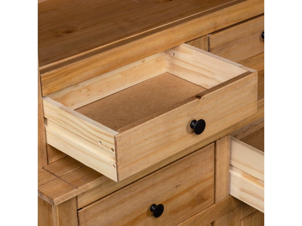 Táto vysoká skrinka je vyrobená z masívneho borovicového dreva. Má rustikálny a trendy dizajn, vďaka čomu bude dekoratívnym a zároveň praktickým doplnkom vo vašej domácnosti.
