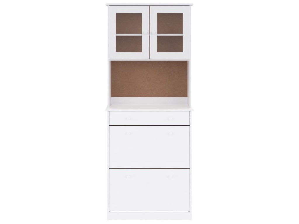 - Dostatok úložného priestoru: Vysoká skrinka s policami, zásuvkou a sklenenými dvierkami ponúka množstvo úložného priestoru a možností vystavenia vašich obľúbených predmetov.