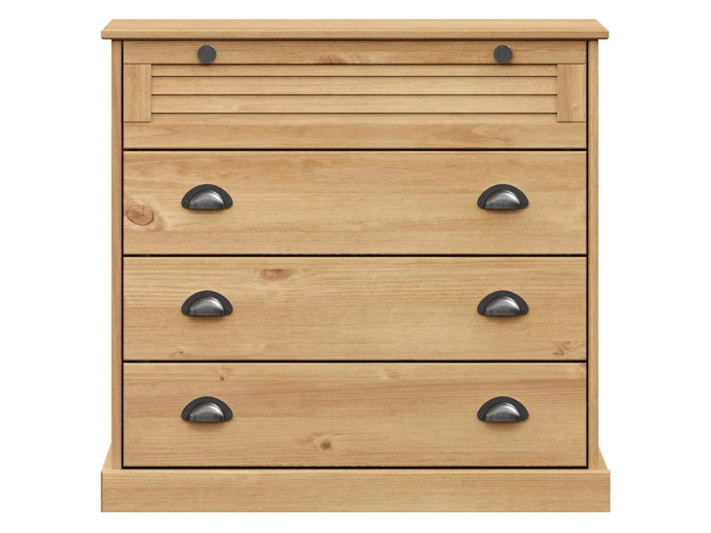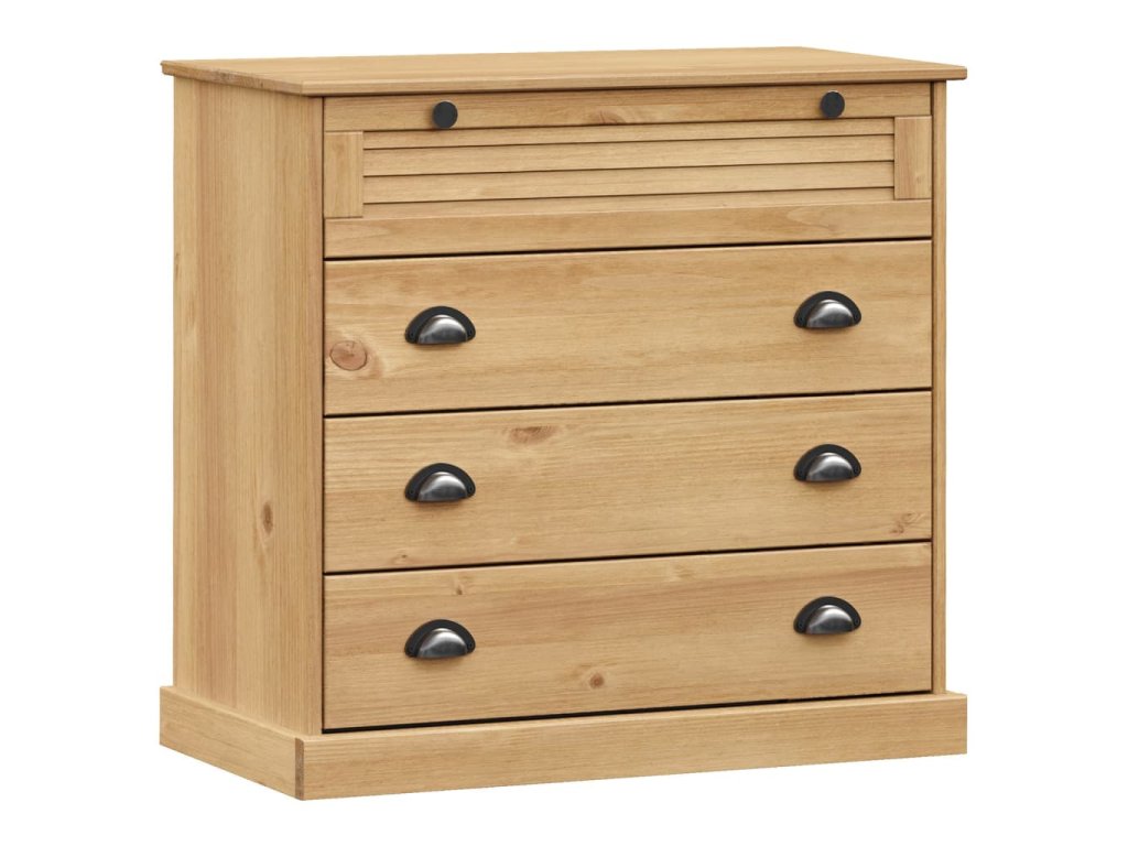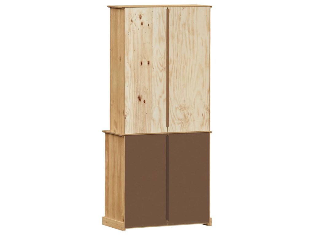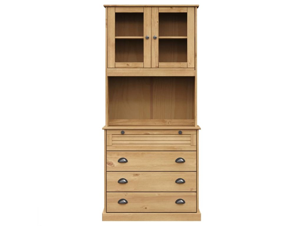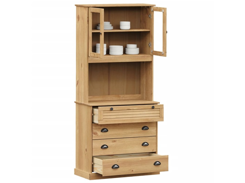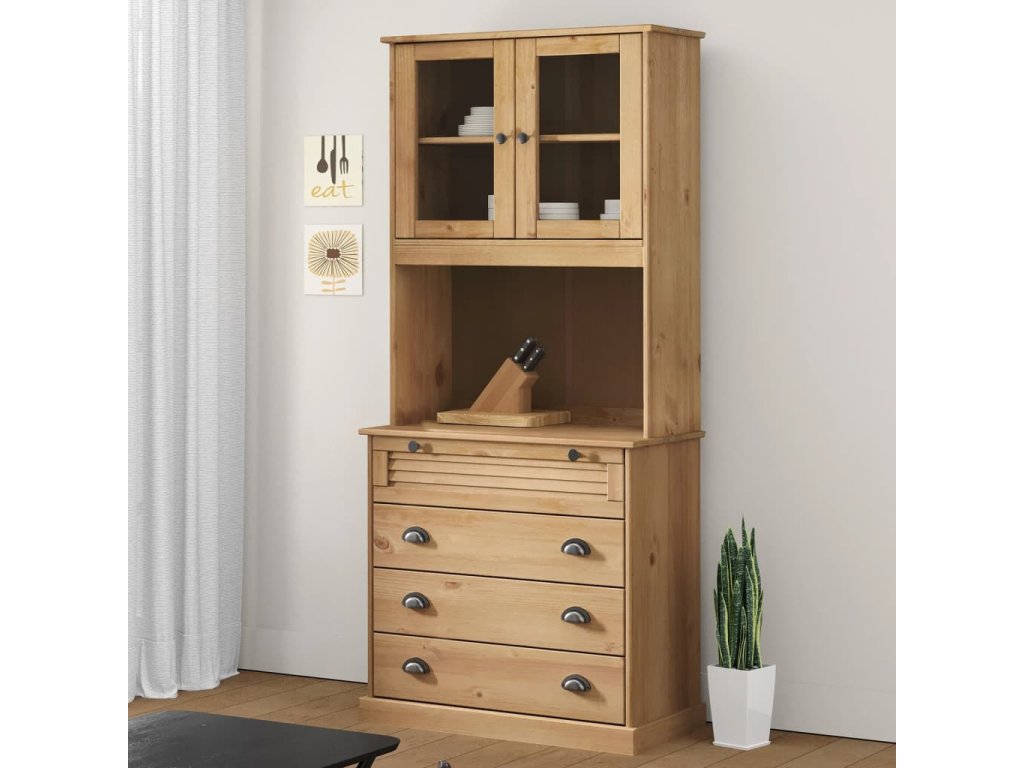 - Borovicový masív: Borovicový masív je krásny prírodný materiál. Borovicové drevo má rovnú kresbu a nachádzajú sa na ňom uzly, ktoré tomuto materiálu dodávajú charakteristický rustikálny vzhľad. Príborník je vyrobený z masívneho borovicového dreva a je odolný a pevný.