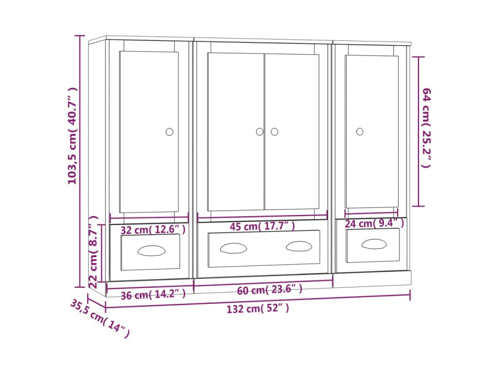 - Celkové rozmery: 132 x 35,5 x 103,5 cm (D x Š x V)